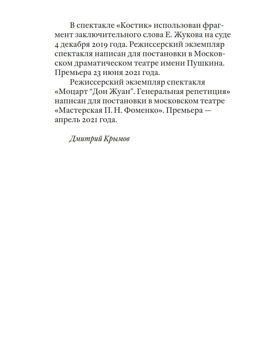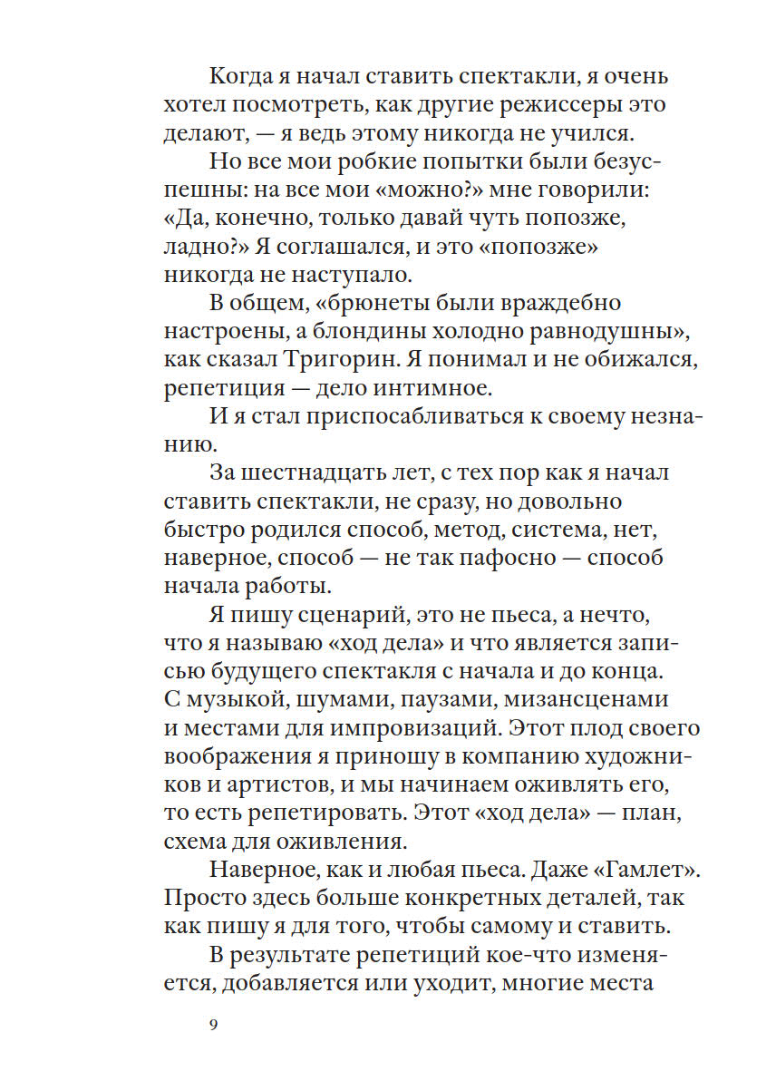 С чего начинается спектакль? Как в сознании режиссера впервые возникает тот единственный образ литературного текста, который позже оживает на сцене? В этой книге собраны девять сценариев знаменитых спектаклей художника и режиссера Дмитрия Крымова. Режиссерские версии, записанные автором, — это возможность увидеть спектакль в момент его придумывания. Этот увлекательный процесс, который сам автор называет «ход дела», на самом деле игра слова и воображения, которая и составляет смысл понятия «Лаборатория Дмитрия Крымова». Книгу предваряет вступление крупнейшего историка и исследователя русского театра и наследия основателей МХТ Инны Соловьевой.