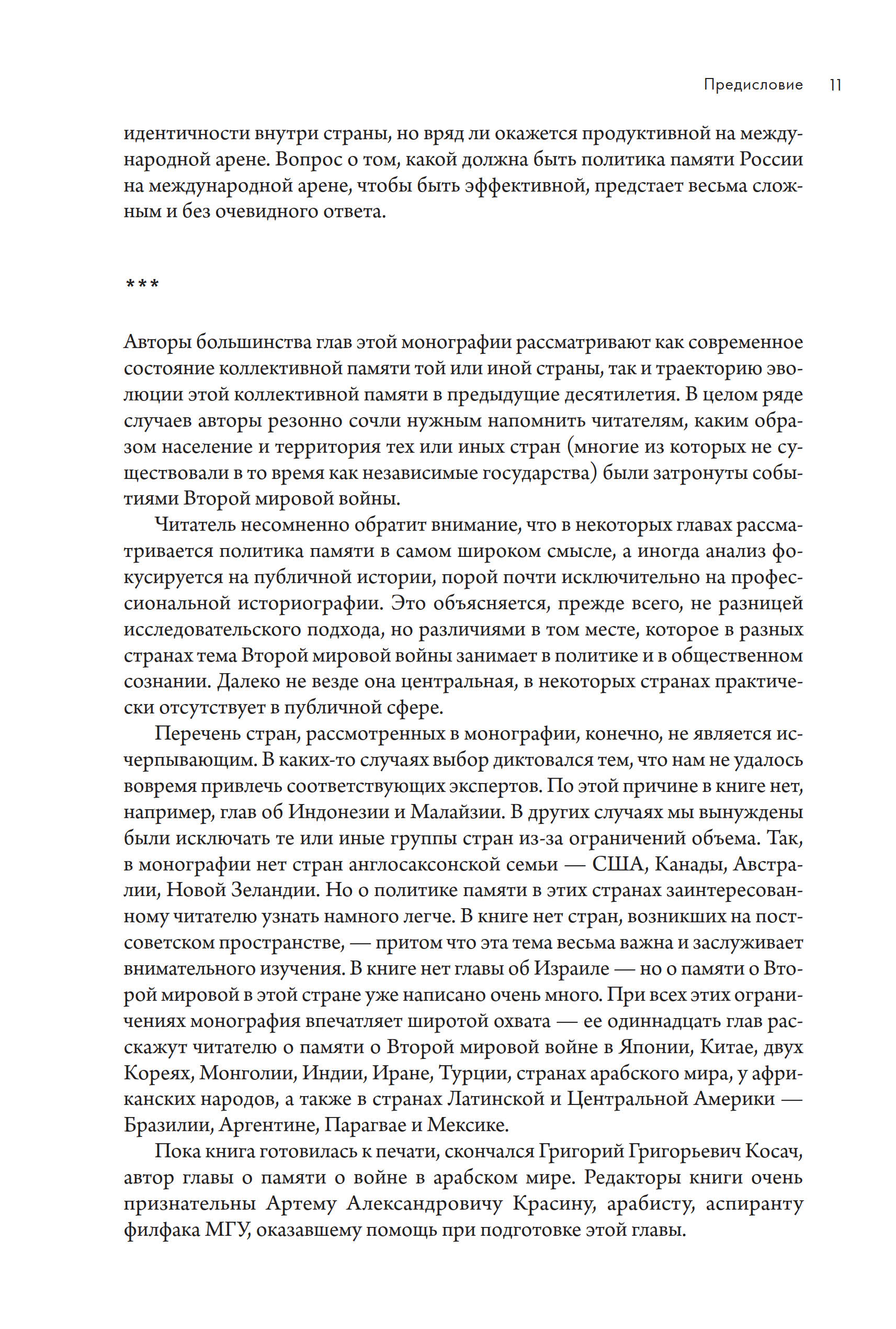 Одиннадцать глав монографии написаны специалистами-страноведами и/или специалистами в сфере международных отношений, и именно с этой перспективы они смотрят на политику памяти о Второй мировой войне в Японии, Китае, Северной и Южной Корее, Монголии, Индии, Иране, Турции, странах арабского мира, Бразилии, Аргентине и Мексике. И международники, и политологи, и культурологи, и историки, и, наконец, исследователи политики памяти как междисциплинарного поля — все найдут здесь много полезной информации и пищу для размышлений.