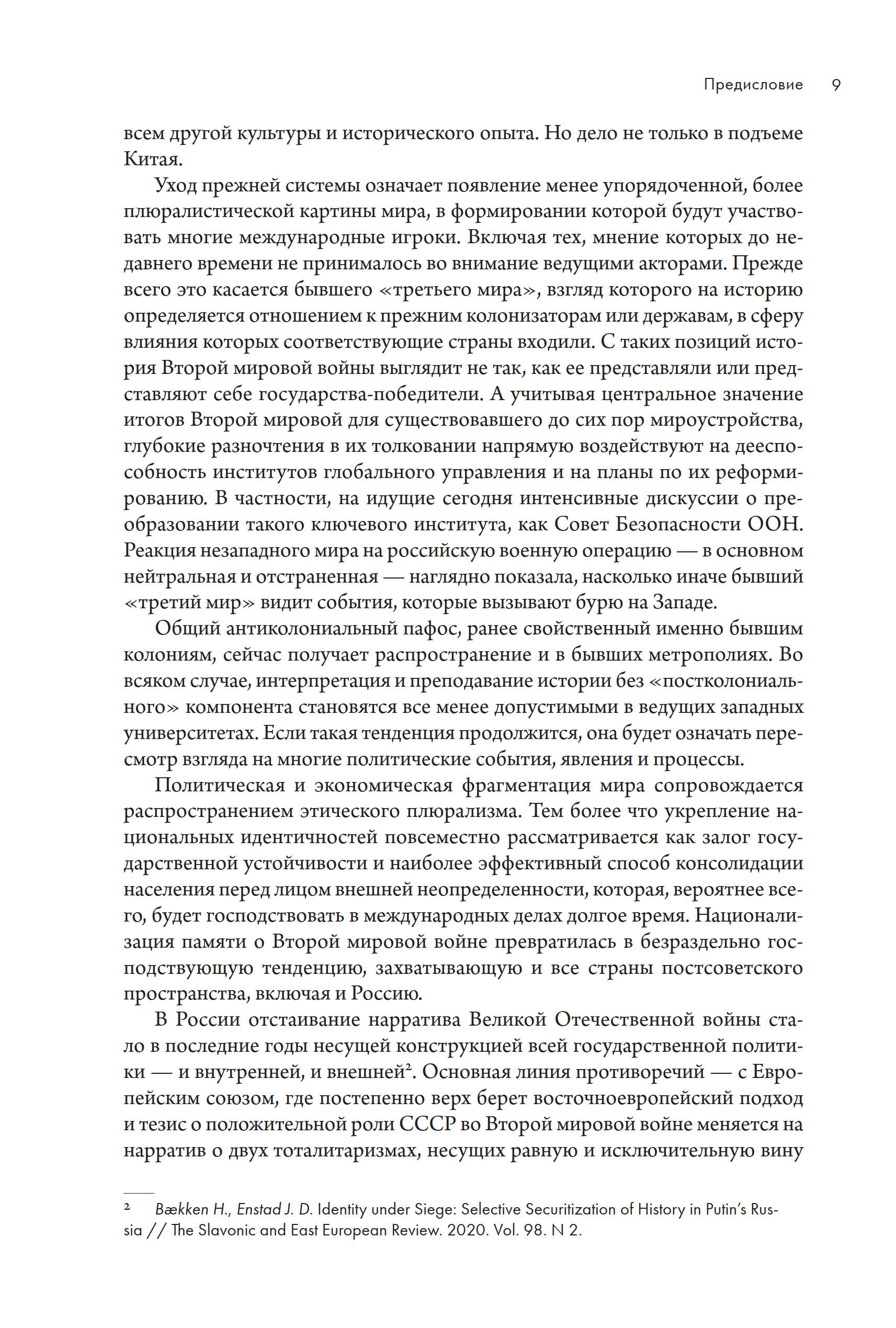 Вторая мировая война определила всю международную политику с середины ХХ вплоть до начала XXI века. Ее интерпретация через образ Великой Отечественной войны стала этическим фундаментом всей российской политики. Отечественные представления о той переломной эпохе не совпадают с оценками и взглядами, устоявшимися в исторической памяти других стран. Европейские и американские нарративы достаточно известны в России, в том числе и в контексте яростных споров на самом высоком политическом уровне. Незападные трактовки оставались по большей части вне поля зрения нашей читающей публики. Кооперация журнала «Россия в глобальной политике» и Центра изучения культурной памяти и символической политики Европейского университета в Санкт-Петербурге позволила подготовить первый квалифицированный обзор и анализ этого проблемного поля.