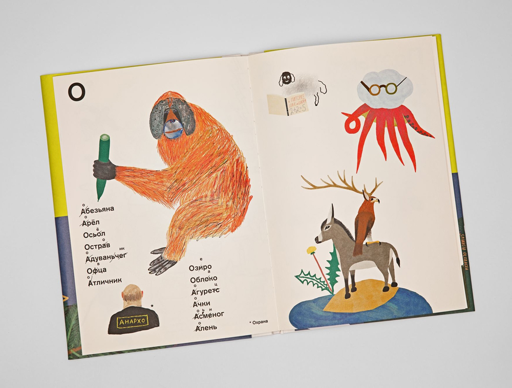 «Азбукварь» художника Родиона Китаева вмещает в себя целую вселенную, полную причудливых образов, задач, игр и секретов, а еще населенную волшебными жителями. На страницах букваря можно встретить не только разнообразных птиц и животных, но и фантастических существ: волковорону, верблюдовулкана и жабожука!