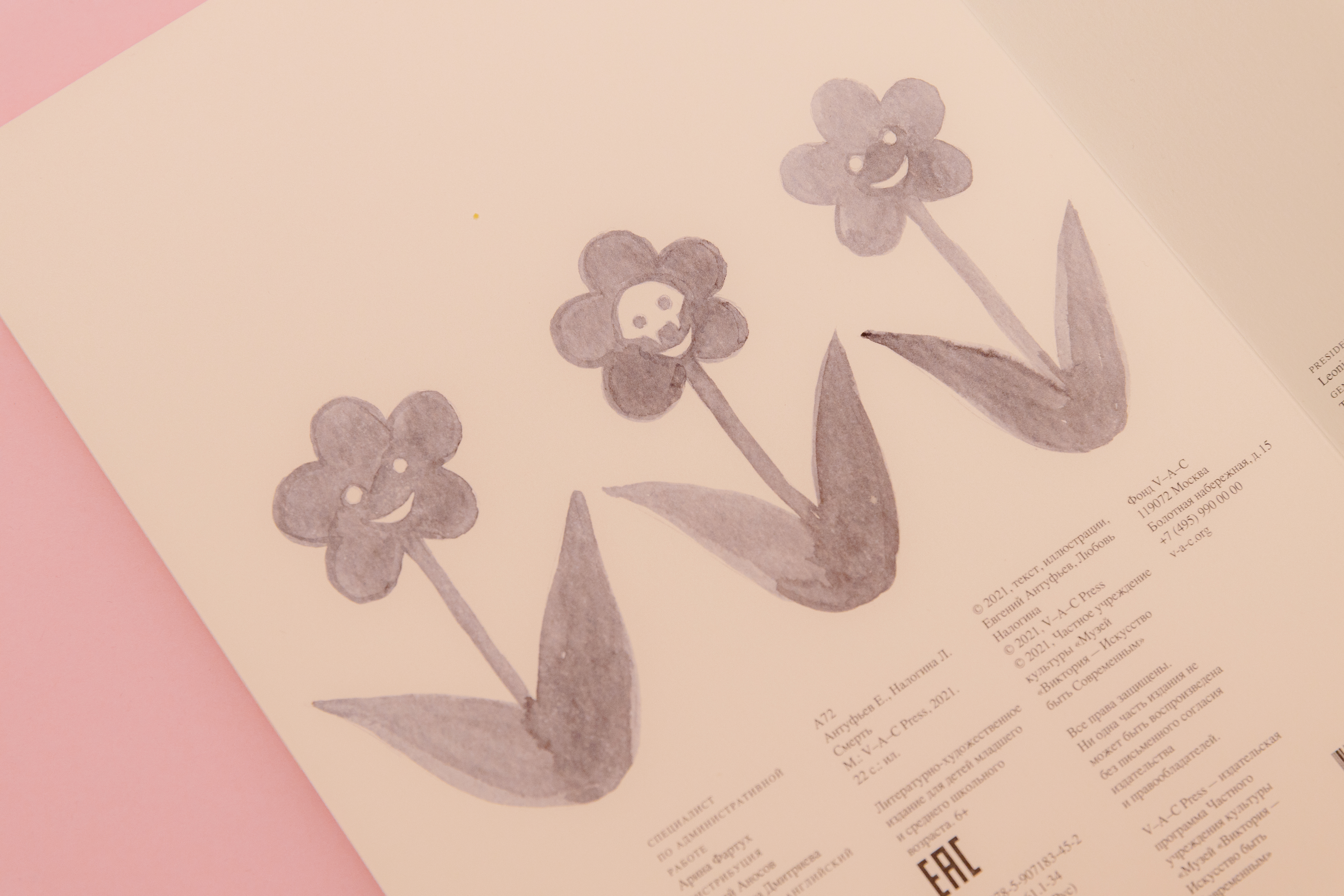 «Смерть» — шестая книга в детской серии V—A—C Press. Проект обращается к традиции советской иллюстрации, представители которой не только занимались оформлением книг для детей, но также играли ключевую роль в становлении искусства своего времени. Книга содержит интерактивные элементы, поп-ап-конструкции, задания и игры, а текст переведен на английский язык.