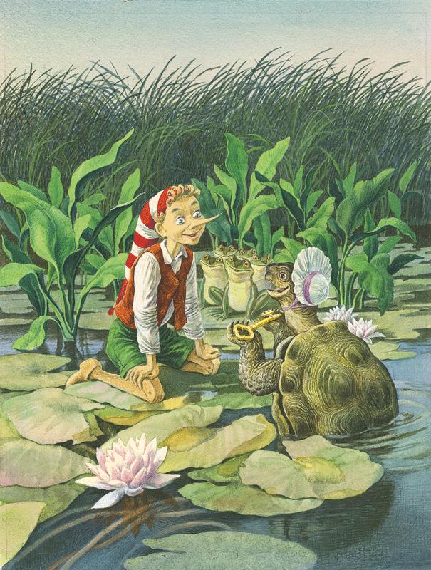 В книге публикуется серия цветных иллюстраций к «Приключениям Буратино», созданная известным петербургским художником Латифом Казбековым.