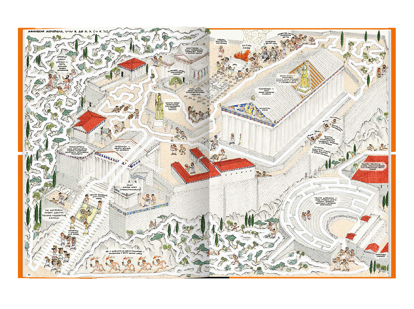Пройди лабиринт греческой мифологии по крутым тропинкам и окажись среди богов, героев, фантастических существ и необычайных событий. Повстречайся с аргонавтами, минотавром и циклопами, с Сизифом, Орфеем и Еленой Прекрасной. Посети олимпиаду, греческий театр и афинский акрополь. Затеряйся в этой книжке, чтобы оказаться в Древней Греции.