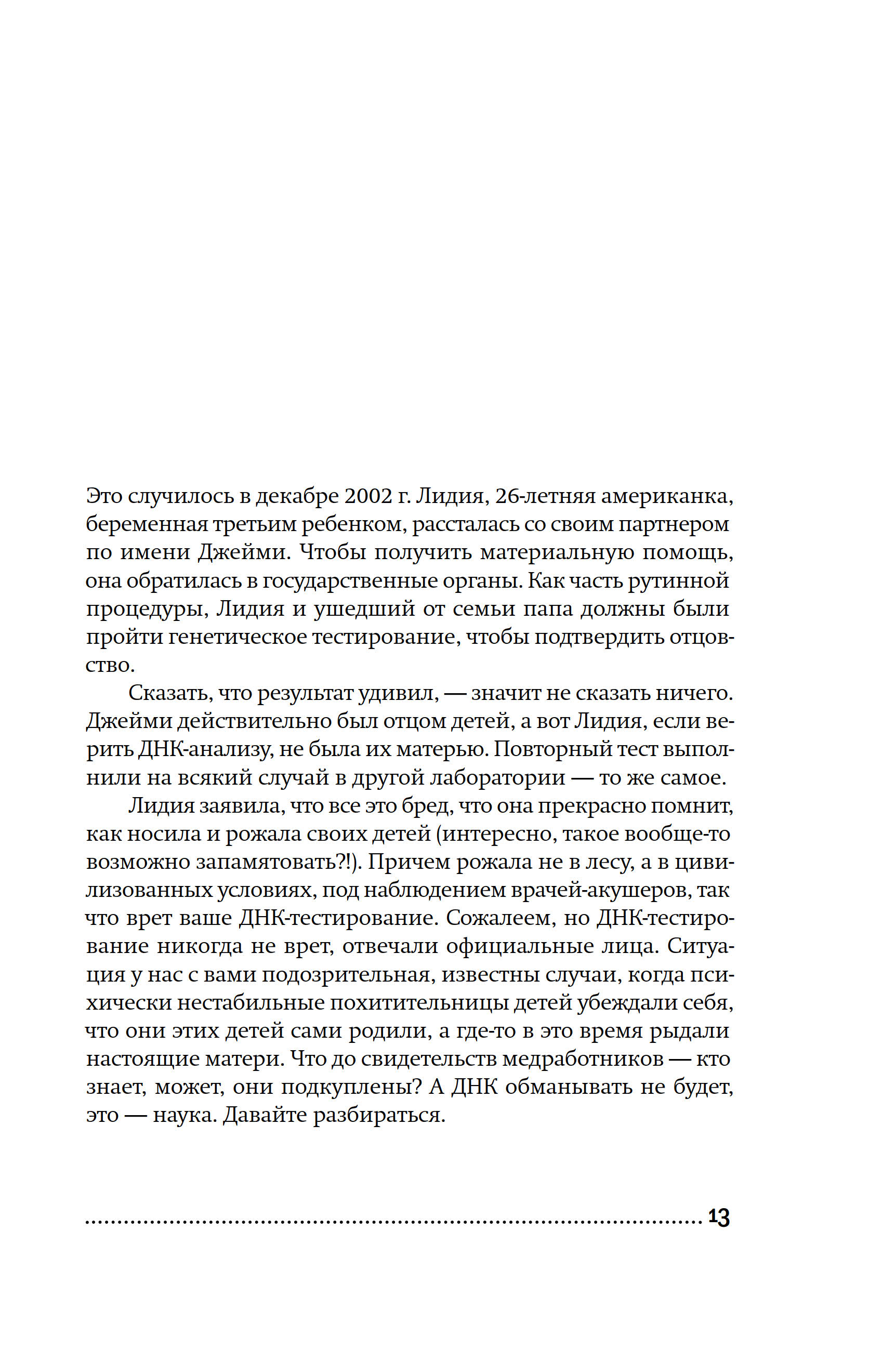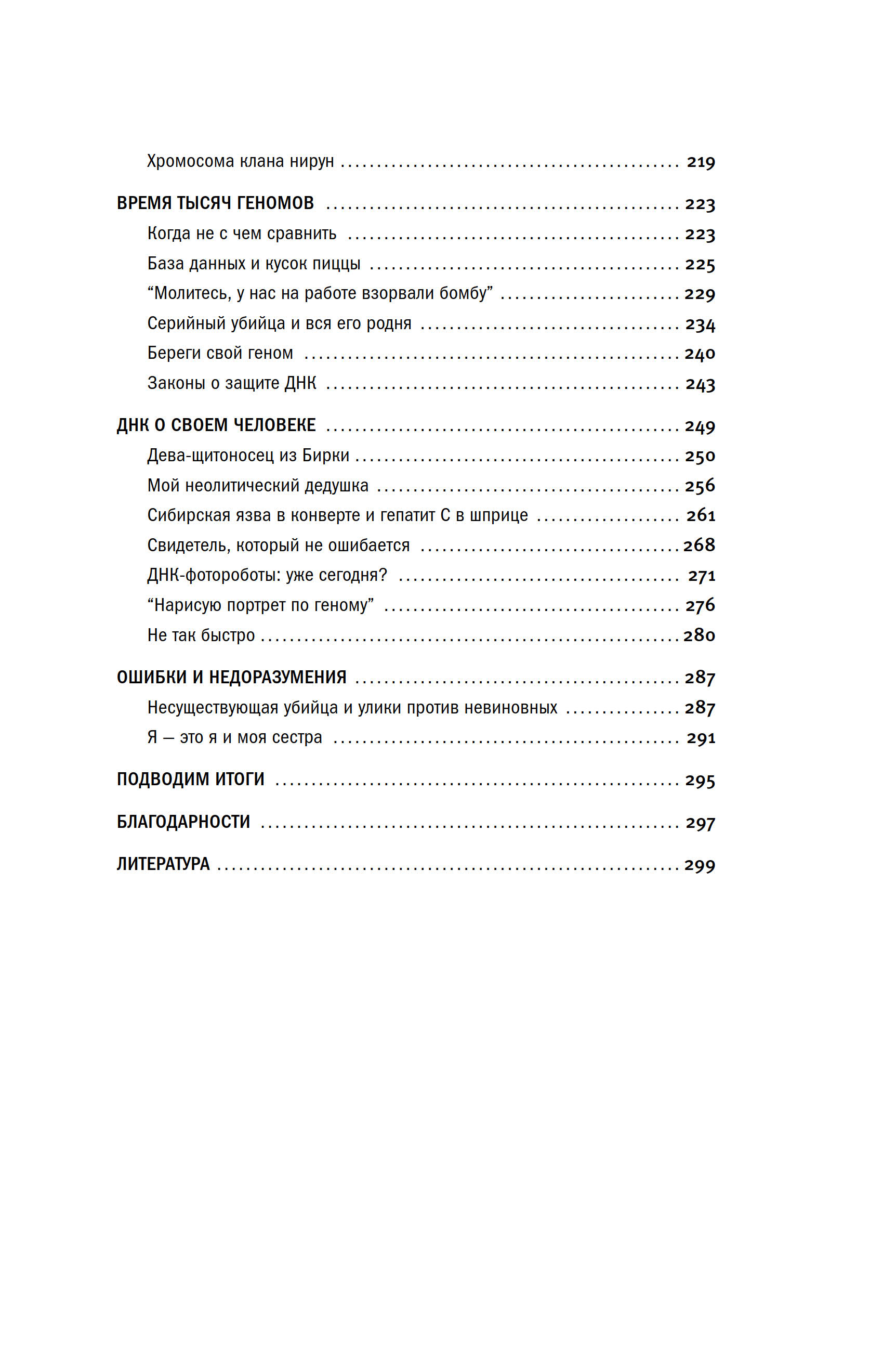 В конце книги читатель узнает, почему нельзя создать биологическое оружие против определённой этнической группы, можно ли восстановить внешность по ДНК и опасно ли выкладывать свой геном в интернет.