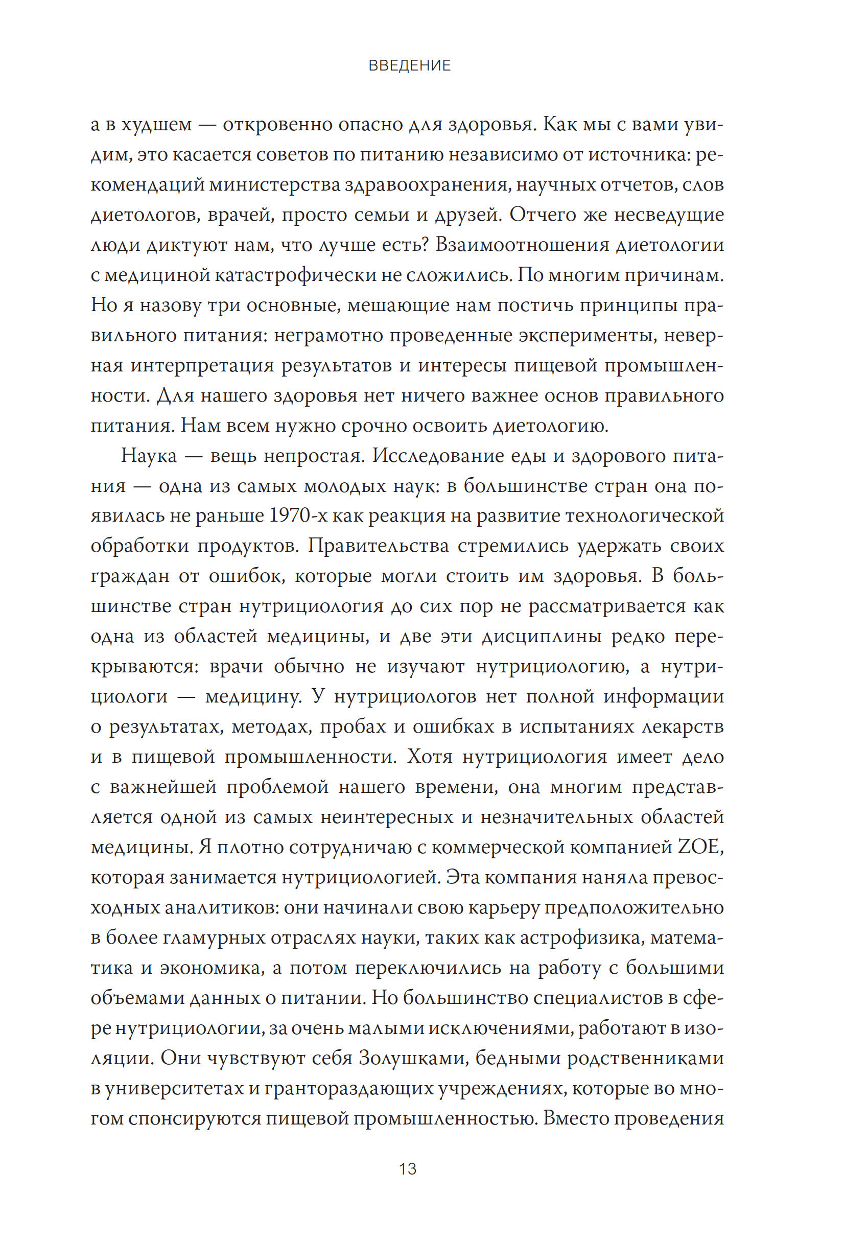 Я ученый и врач. Однако я потрясен тем, что открыл за последние десять лет и продолжаю открывать. Я уже пересмотрел свои взгляды на многие традиции питания и здоровья. Моя предыдущая книга, «Мифы о диетах», посвящена легендам, связанным с конкретными диетами, и знакомит читателей с понятием микробиома. Но результаты исследований заставили меня шире и глубже рассмотреть тему еды в целом. Эта книга родилась из настоятельной потребности — пересмотреть наше питание, начать задавать нужные вопросы и больше требовать с ученых и популяризаторов науки. Как мы увидим, исследование вопросов питания — одна из наиболее динамично развивающихся областей современной науки. Эта книга опирается на самые последние научные достижения, в том числе революционные работы моей потрясающей группы в Лондонском королевском колледже и ученых всего мира, сотрудничавших с нами. Поскольку стиль питания неразрывно связан со стилем жизни, это важно не только для нас, но и для нашей планеты и блага будущих поколений.