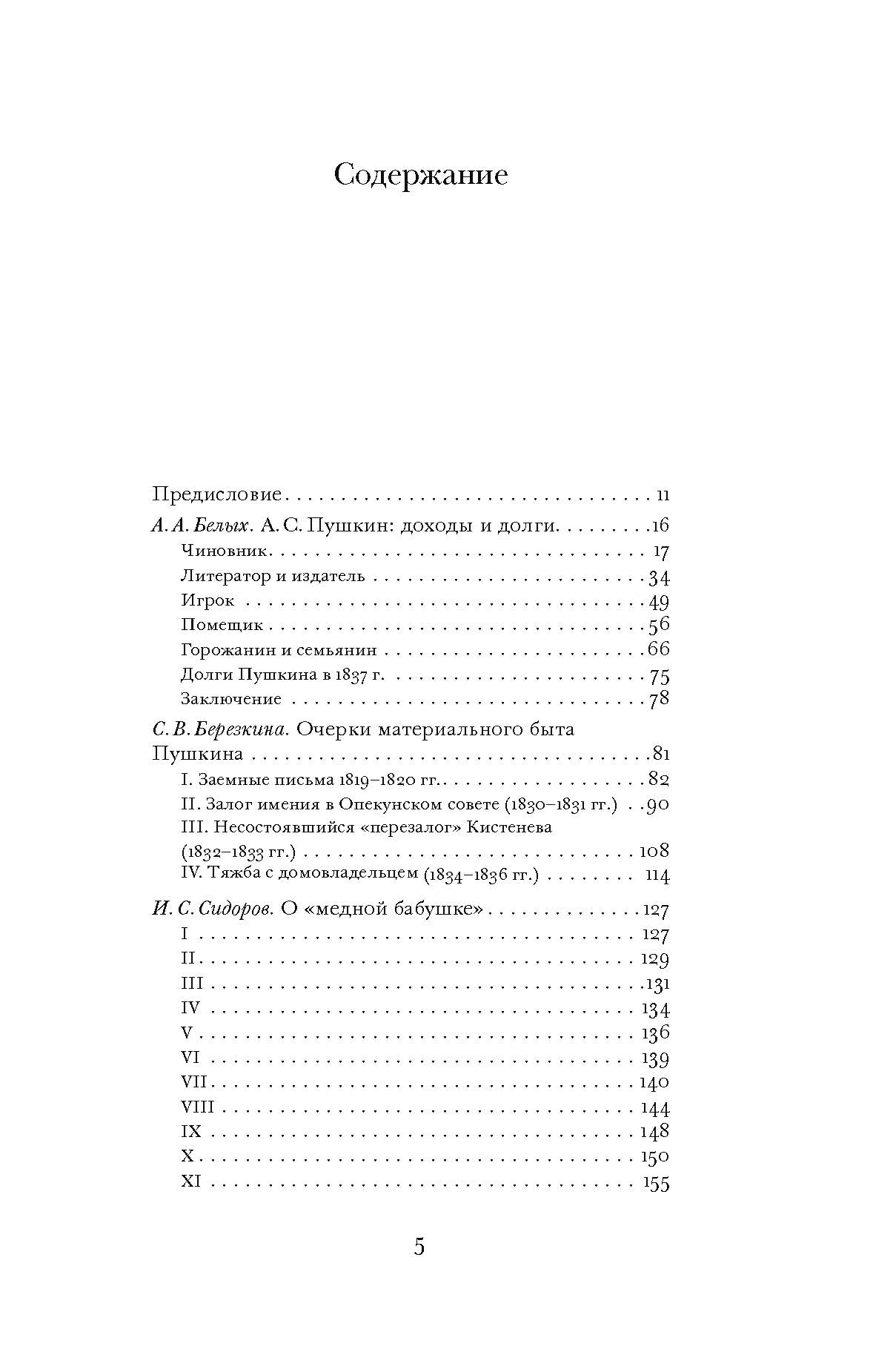 В книгу также включены работы современных ученых — «А. С. Пушкин: доходы и долги» Белых, «Очерки материального быта Пушкина» Березкина, «О „медной бабушке“» Сидорова.
