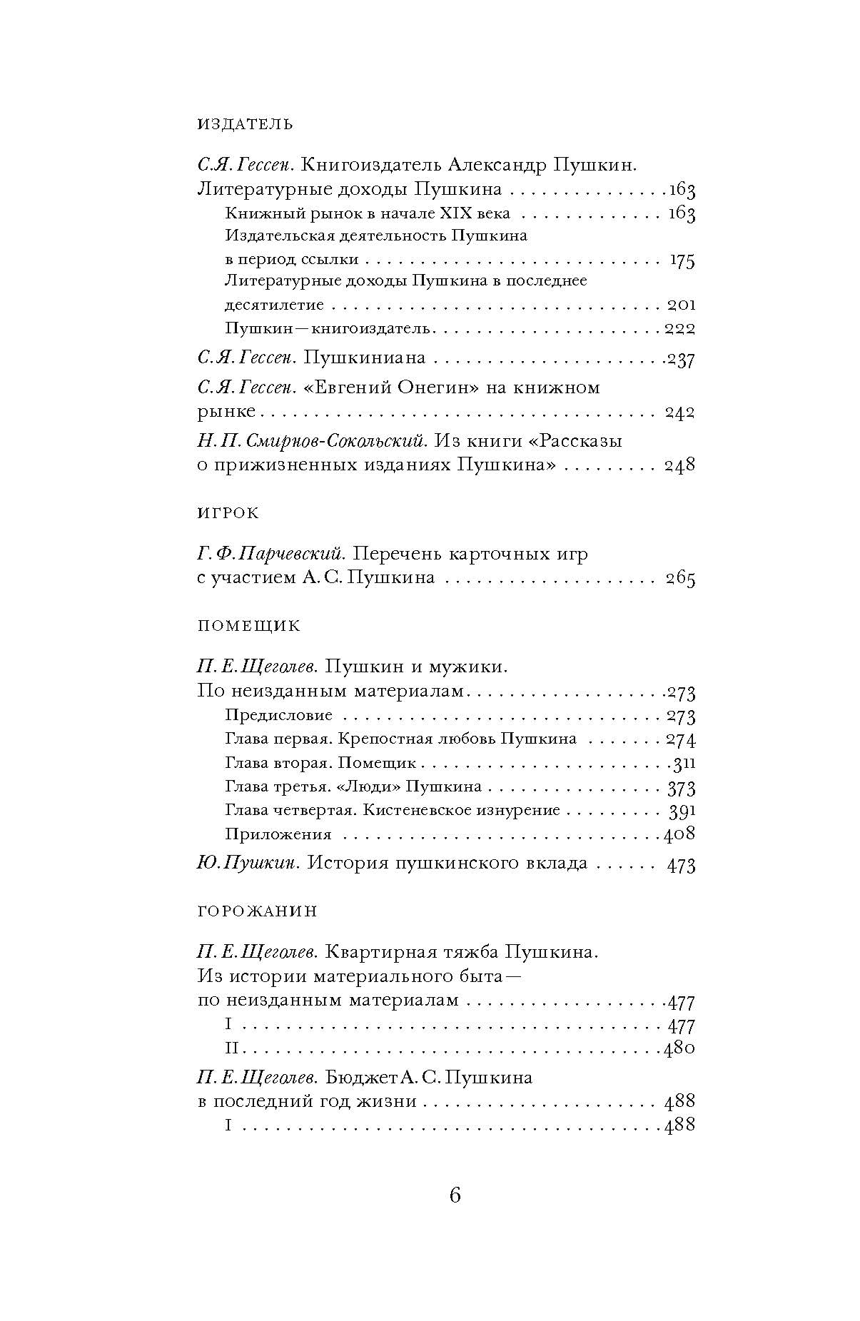 В экономической жизни Пушкина можно выделить пять ипостасей: чиновник, литератор и книгоиздатель, карточный игрок, помещик, горожанин-семьянин. Именно по этому принципу сгруппированы публикуемые в книге материалы.