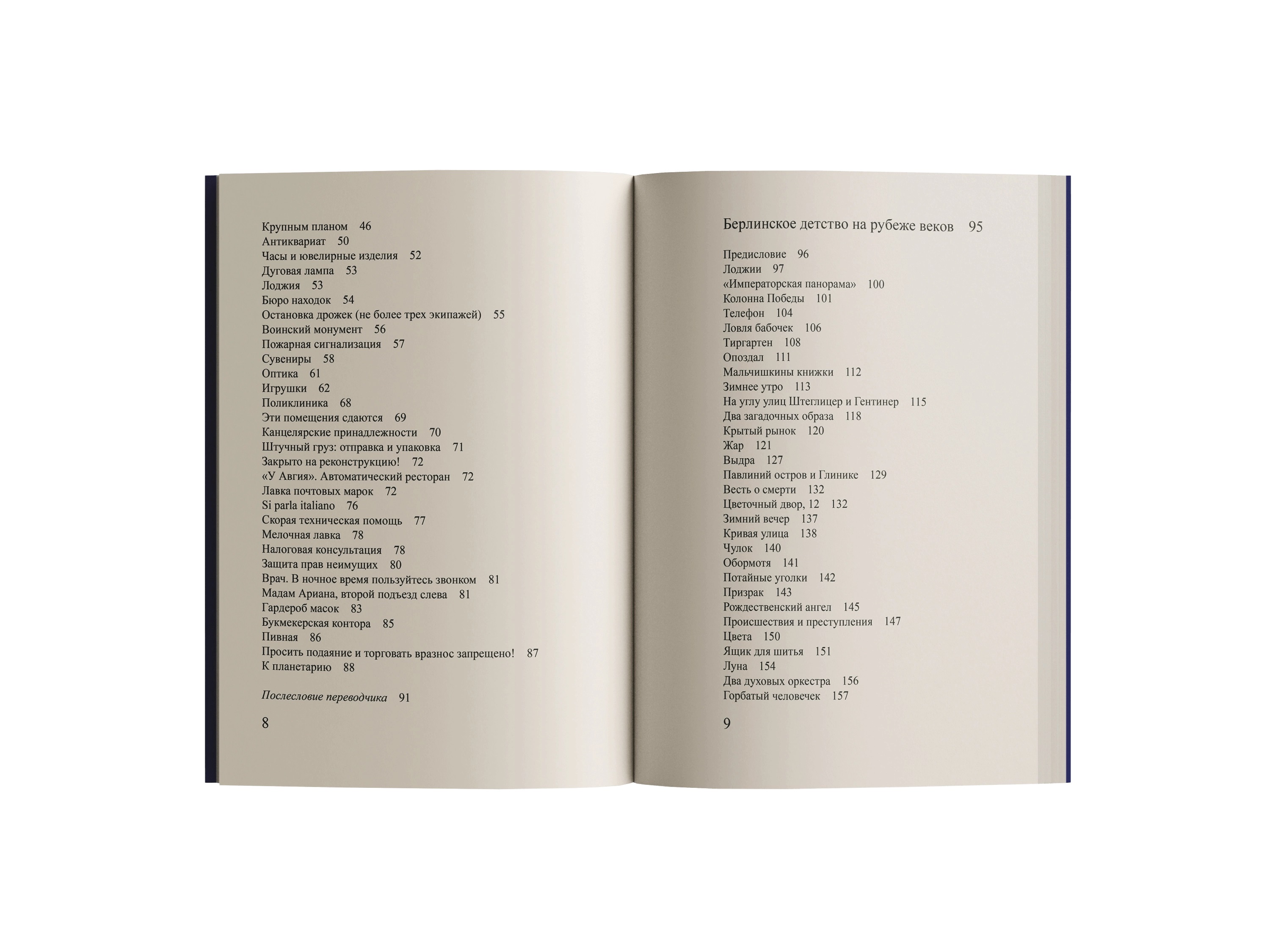 Сборник составлен из двух блестящих текстов мемуарного характера, написанных Вальтером Беньямином в середине 1920-х годов: «Улица с односторонним движением», и в начале 1930-х «Берлинское детство на рубеже веков».