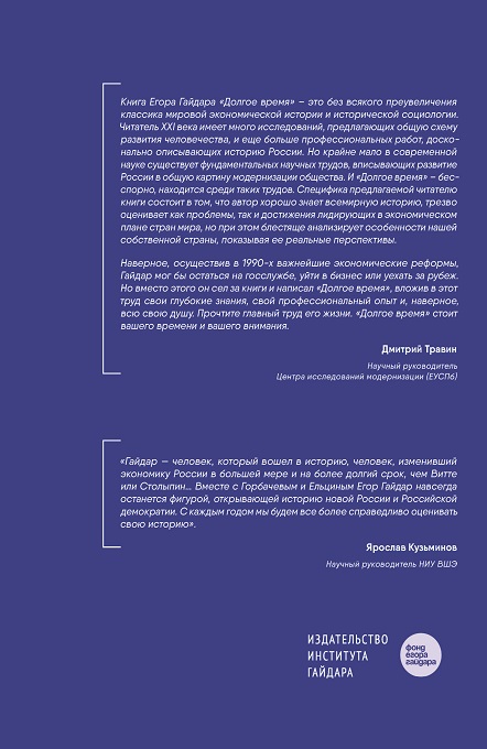 Работа «Долгое время. Россия в мире: очерки экономической истории» посвящена экономической политике России.