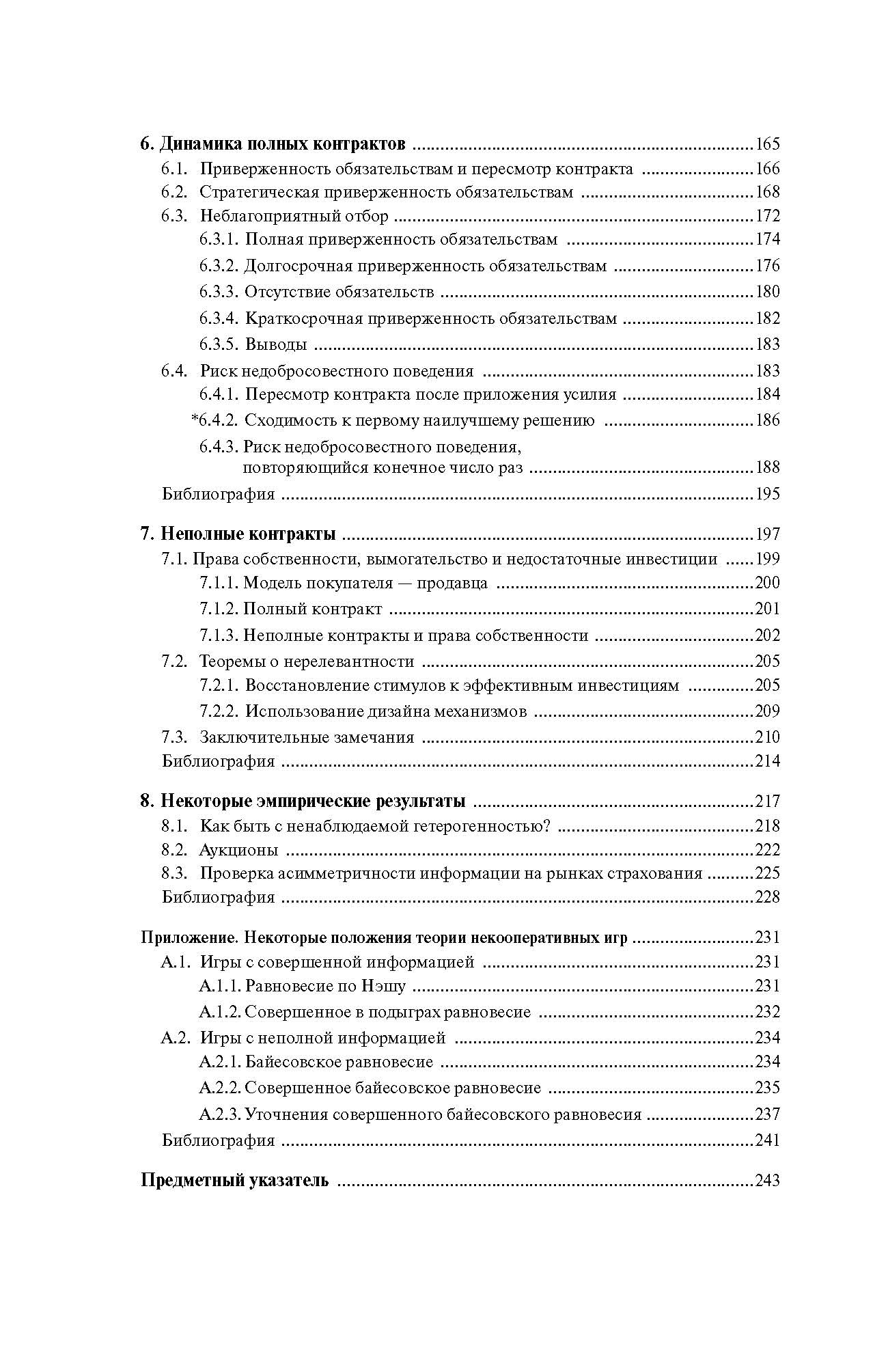 Во втором издании были внесены важные изменения в главу 3. Они касаются примеров использования, а также расширений модели неблагоприятного отбора. В частности, в главе более подробно обсуждаются ситуации с множеством Принципалов, проблемы сговора и многомерного неблагоприятного отбора. Изменения были внесены и в главу 5. Они касаются вопросов риска недобросовестного поведения в моделях с ограниченной ответственностью и карьерными соображениями, а также в моделях общего агентства. Две главы были полностью переписаны: глава 7 по теории неполных контрактов и глава 8, посвященная некоторым эмпирическим результатам применения теории контрактов. В приложении, в качестве дополнения к главам 4 и 6, рассматриваются понятия теории некооперативных игр. В конце глав 2, 3, 4 и 5 приводятся упражнения.