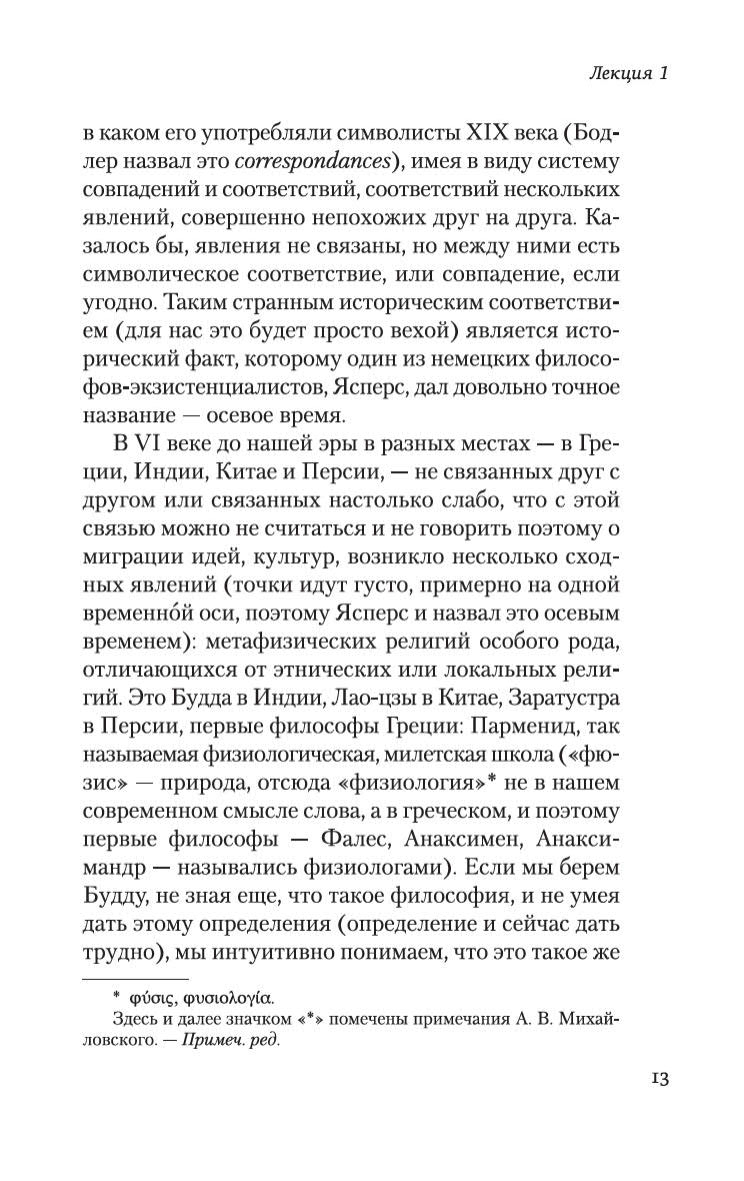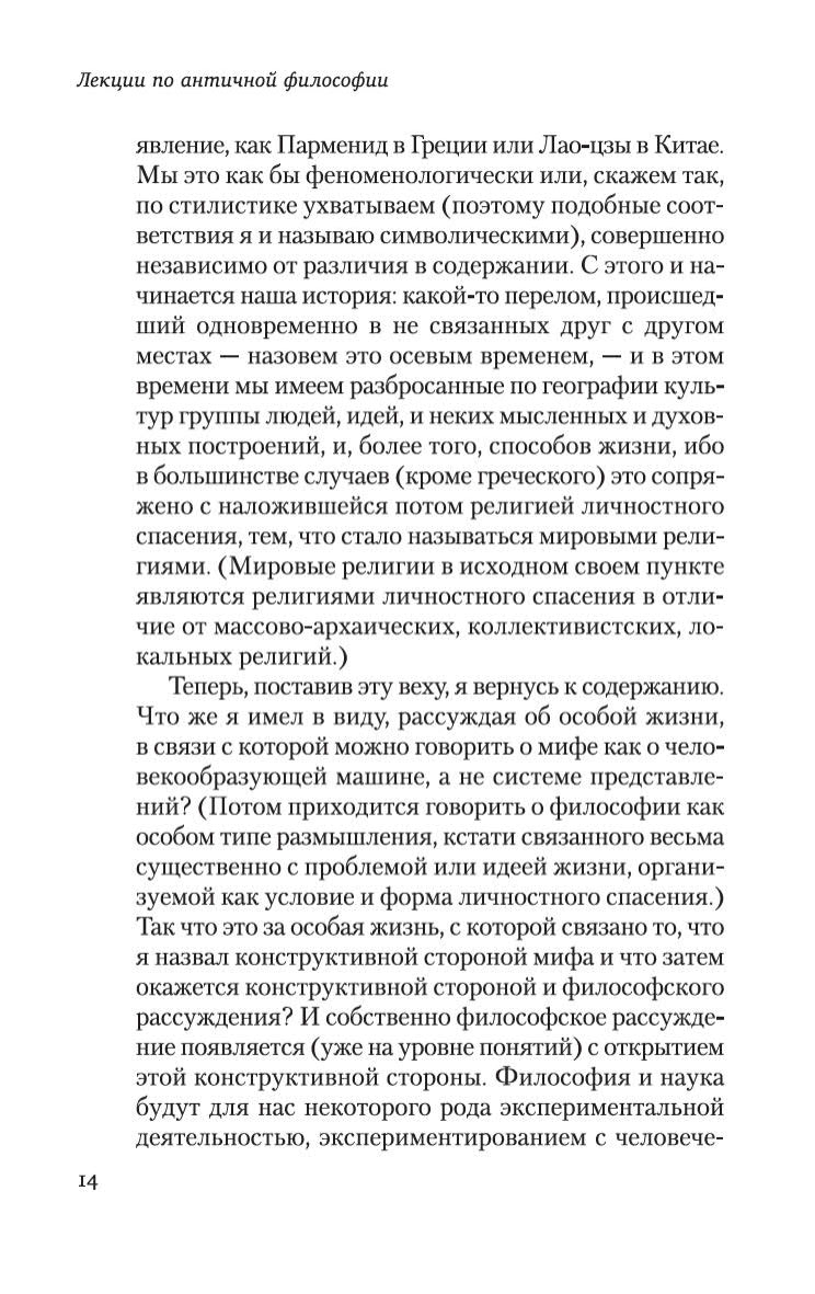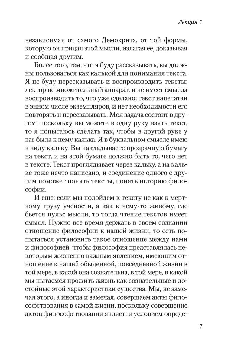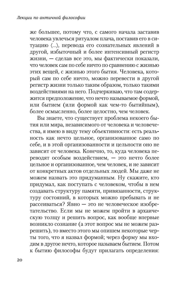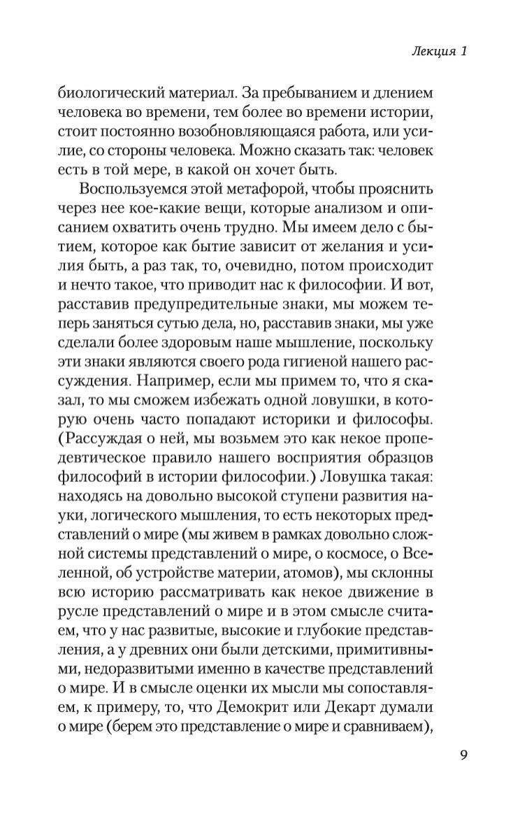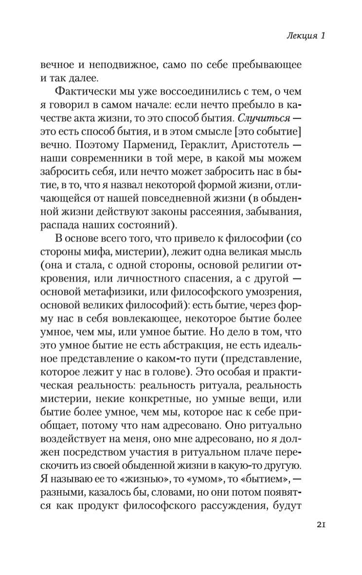 Автор ставит перед собой задачу рассказать об истории философии как истории размышлений об отношениях человека и мира. В центре его внимания проблема бытия , возникающая в пространстве древнегреческой мысли. Мамардашвили прослеживает в размышлениях греческих философов фундаментальные принципы, лежащие в основаниях античного, а, в последующем, и европейского идеала мышления и понимания мира и человека. Настоящее издание является наиболее выверенным на сегодняшний день и рассчитано на самый широкий круг читателей, интересующихся актуальными вопросами культуры.