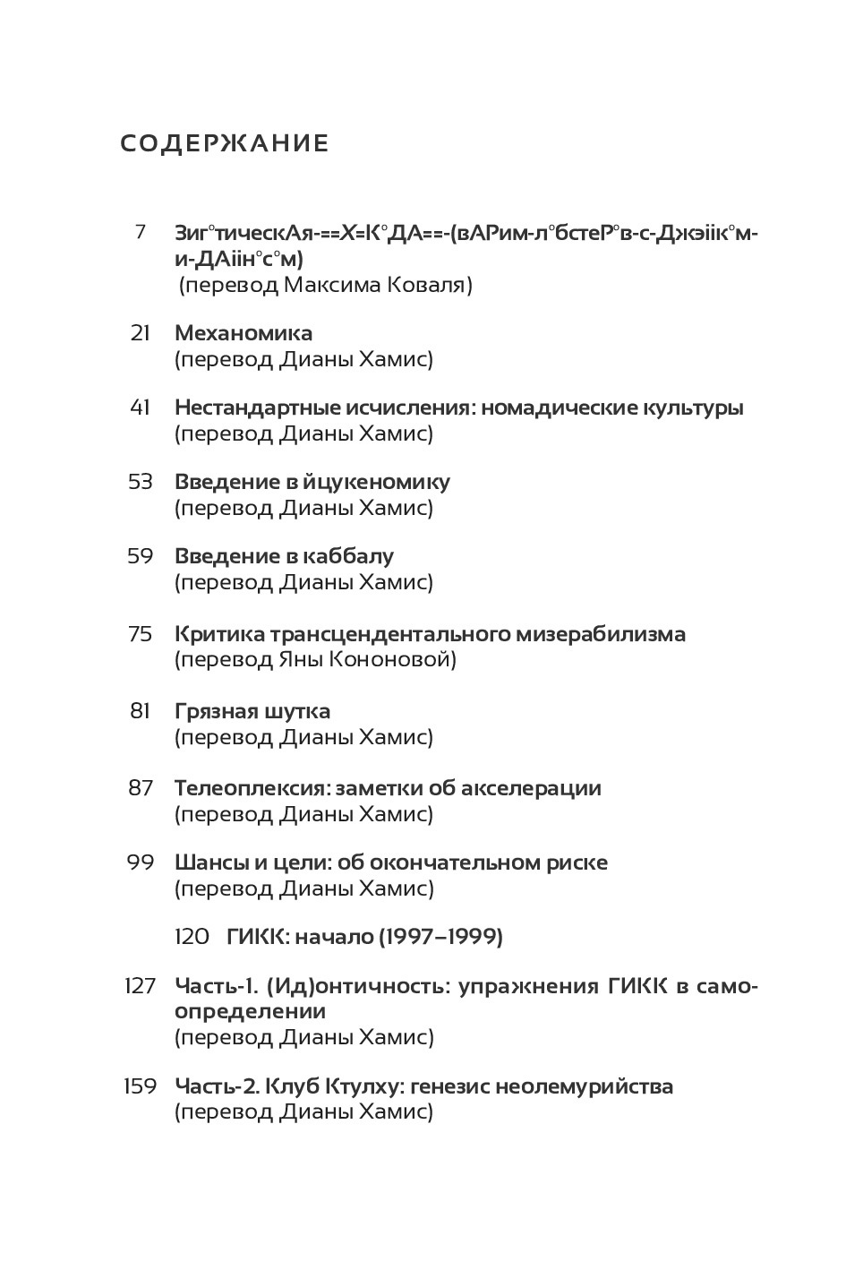 В третий том собрания сочинений английского философа и писателя Ника Ланда вошли работы, объединенные двумя темами. Первая из них — его личные эксперименты с нестандартными письменностями и исчислениями, главнм образом проведенные вне рамок коллективных практик Группы исследовании кибернетической культуры (ГИКК), и развивающие темы, от которых Лад не отступился до сих пор, такие как йцукеномика или каббала. Некоторые из этих текстов максимально неформальны и дики — прочесть их можно только в режиме «вирусно-экспериментальной поэзии». Другие же не только из относительно нормальных предложений, но и обращаются к реальности. Свое нестандартное понимание исчисления и связи математики с мышлением Ланд тут же применяет в сфере экономики и искусственного интеллекта, которые, впрочем, для него почти неразличимы, — этот тренд начинается в конце девяностых, но продолжается до сих пор, и недавние работы Ланда на эту тему также входят в настоящий том. Вторая тема — истоки ГИКК и их гипервереального «двойника», Клуба Ктулху, используемого ГИКК в качестве концептуального персонажа для исследования кибернетического и демонического, а также вселенских заговоров, масштабных сект, грядущих катастроф и прочих непременных атрибутов гиперверия. Наконец, этот том не был бы завершен без «Критики трансцендентального мизерабилизма» и «Грязной шутки» — едких комментариев, написанных Ландом о политике левых и о самом себе на закате академической карьеры.