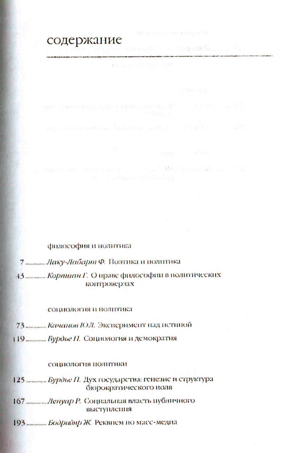 | Автор | Бодрийяр Жан, Бурдье Пьер, Лаку-Лабарт Филипп, Качанов Юрий Львович, Ленуар Реми, Кортиан Гарбис, Дмитриев Александр Николаевич, Давыдов Юрий Николаевич, Може Жерар, Карсенти Брюно |