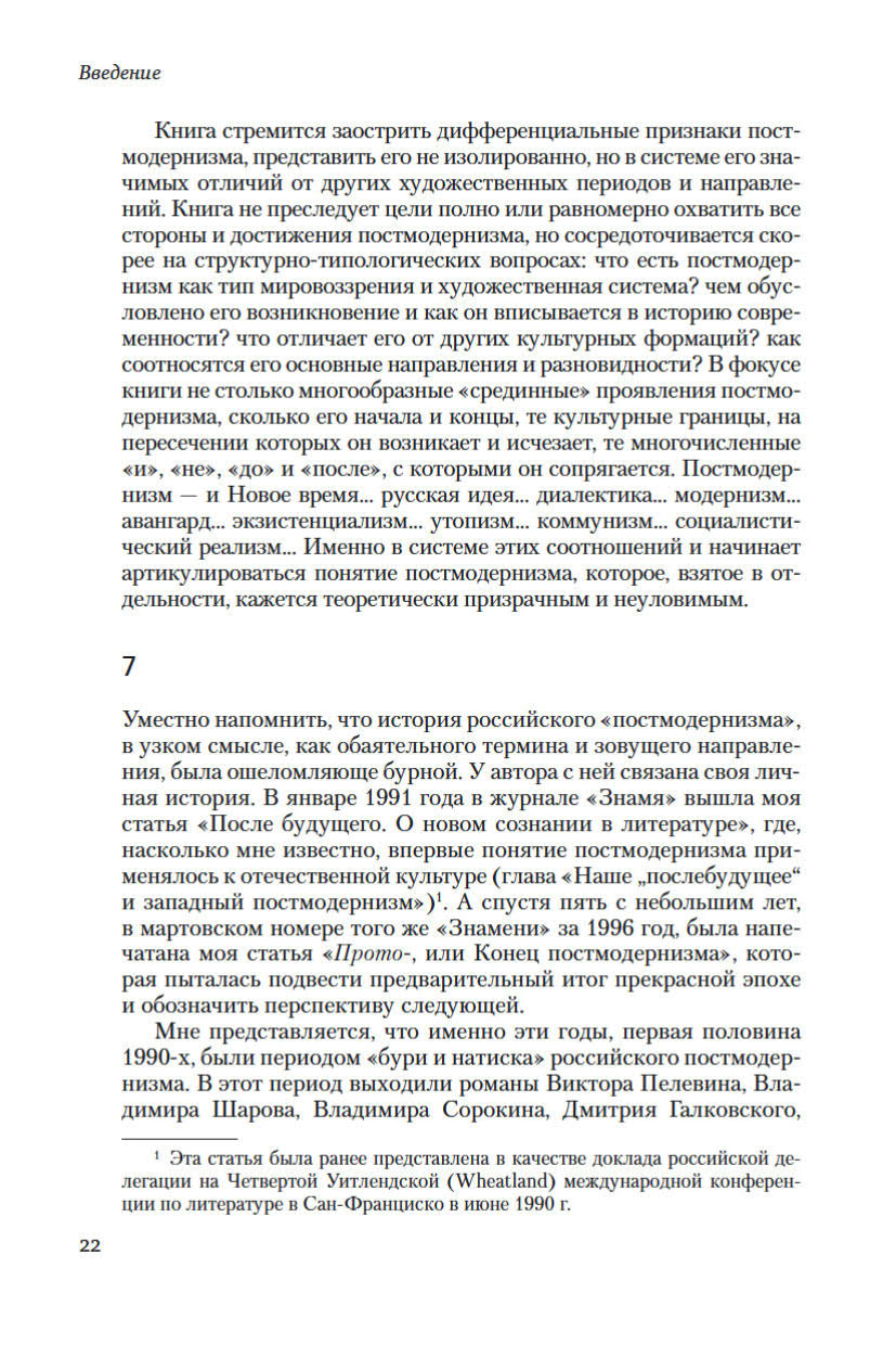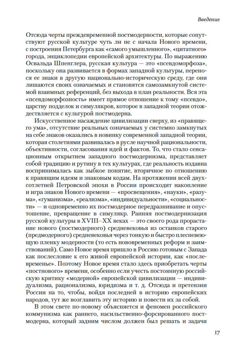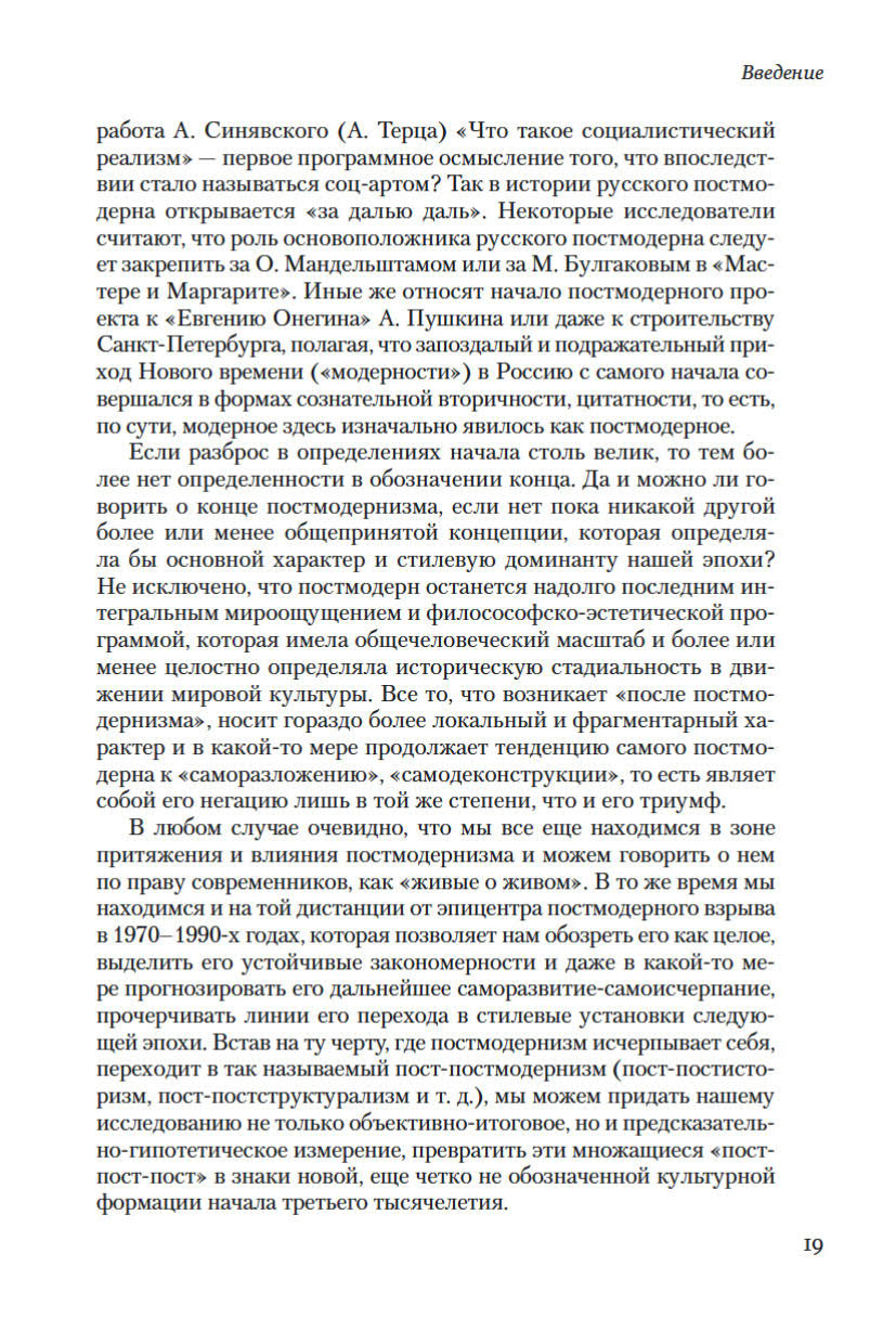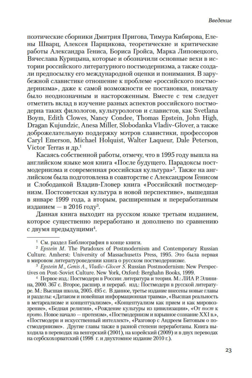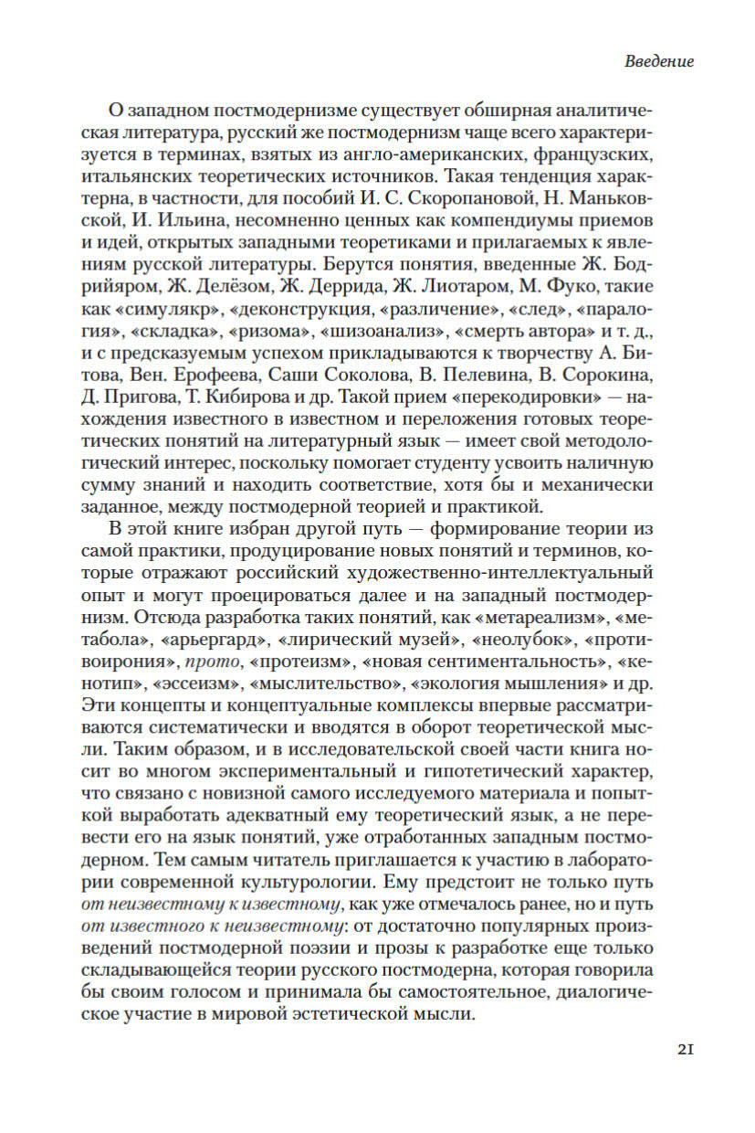 «Постмодернизм в России» — это разностороннее исследование российского постмодерна, его истоков и основных этапов в XX веке, а также культурно-исторических отличий от западного постмодернизма. В России постмодернизм стал не только направлением в философии, литературе и искусстве, но и способом критического и иронического осмысления повседневности, общественно-политических и технических симулякров. Эта книга писалась на протяжении почти сорока лет, одновременно со становлением самого российского постмодернизма, у истоков которого стоял и сам М. Эпштейн. Автор выдвигает оригинальную концепцию конца Нового времени и соотношения постмодернизма с коммунизмом, модернизмом, экзистенциализмом. Рассматривает основные литературные и теоретические программы постмодерна в творчестве его ярких представителей (А. Синявский, И. Кабаков, Вен. Ерофеев, Д. Пригов, Т. Кибиров, А. Генис...) и отдельных направлений (метареализм, концептуализм, соцарт, арьергард).