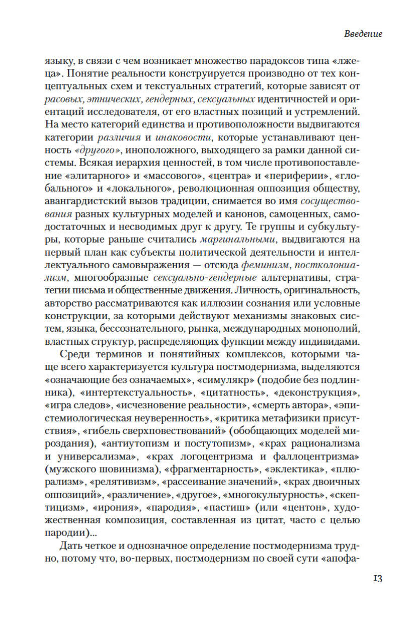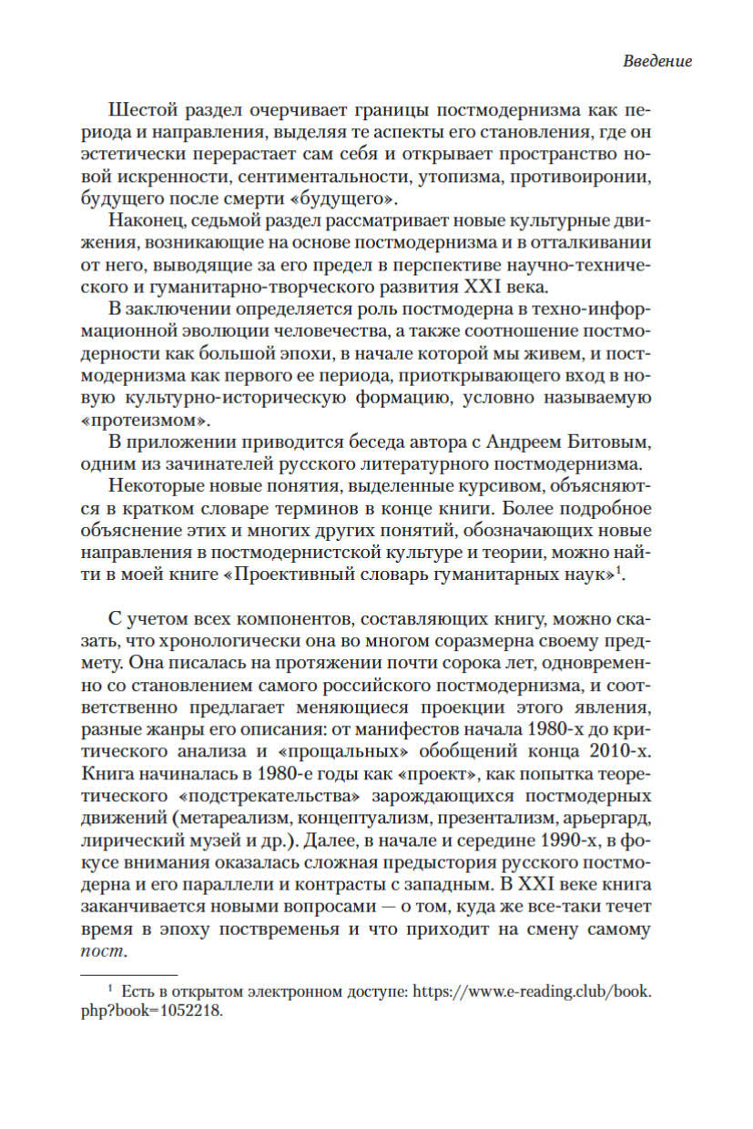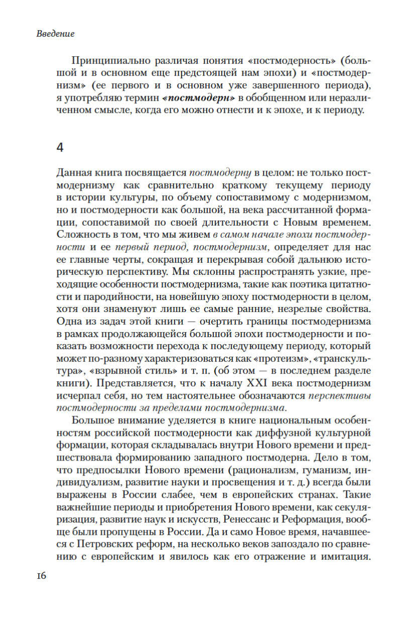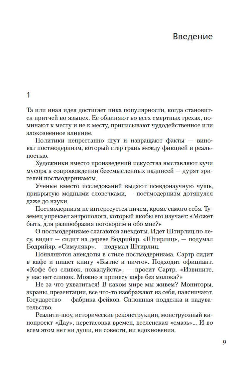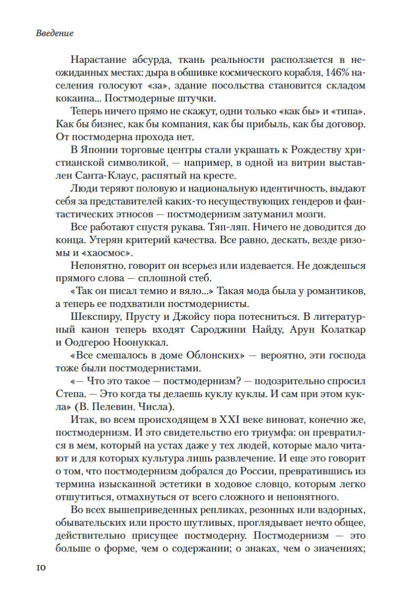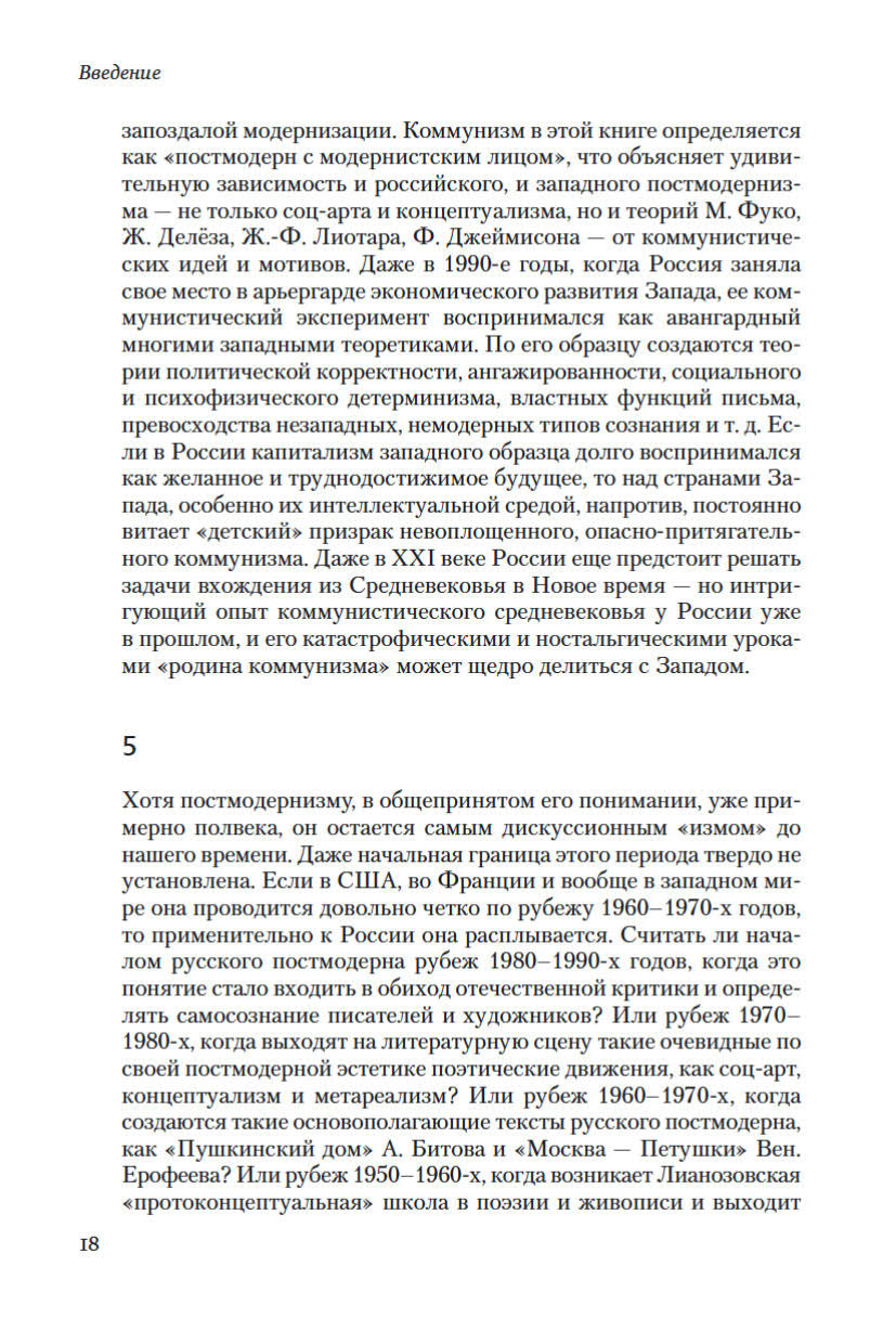 «Постмодернизм в России» — это разностороннее исследование российского постмодерна, его истоков и основных этапов в XX веке, а также культурно-исторических отличий от западного постмодернизма. В России постмодернизм стал не только направлением в философии, литературе и искусстве, но и способом критического и иронического осмысления повседневности, общественно-политических и технических симулякров. Эта книга писалась на протяжении почти сорока лет, одновременно со становлением самого российского постмодернизма, у истоков которого стоял и сам М. Эпштейн. Автор выдвигает оригинальную концепцию конца Нового времени и соотношения постмодернизма с коммунизмом, модернизмом, экзистенциализмом. Рассматривает основные литературные и теоретические программы постмодерна в творчестве его ярких представителей (А. Синявский, И. Кабаков, Вен. Ерофеев, Д. Пригов, Т. Кибиров, А. Генис...) и отдельных направлений (метареализм, концептуализм, соцарт, арьергард).