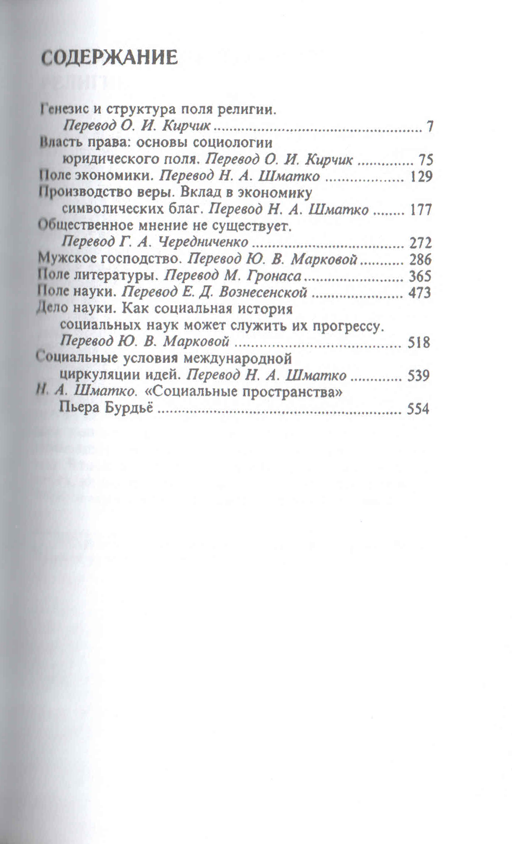 В книге представлены избранные труды Пьера Бурдье, наиболее близкие и актуальные для российского читателя Автор 35 книг и нескольких сотен статей, переведенных на десятки языков, Пьер Бурдье изучал систему образования, государство, власть и политику, литературу и живопись, экономику и масс-медиа, науку и религию. Отобранные для книги тексты в большей мере, чем какое-либо из существующих французских изданий, показывают все разнообразие его исследовательской проблематики, представленное в работах разных лет. Данное издание содержит работы, посвященные анализу таких разнообразных областей социального пространства, как культура, наука, экономика, религия, право.