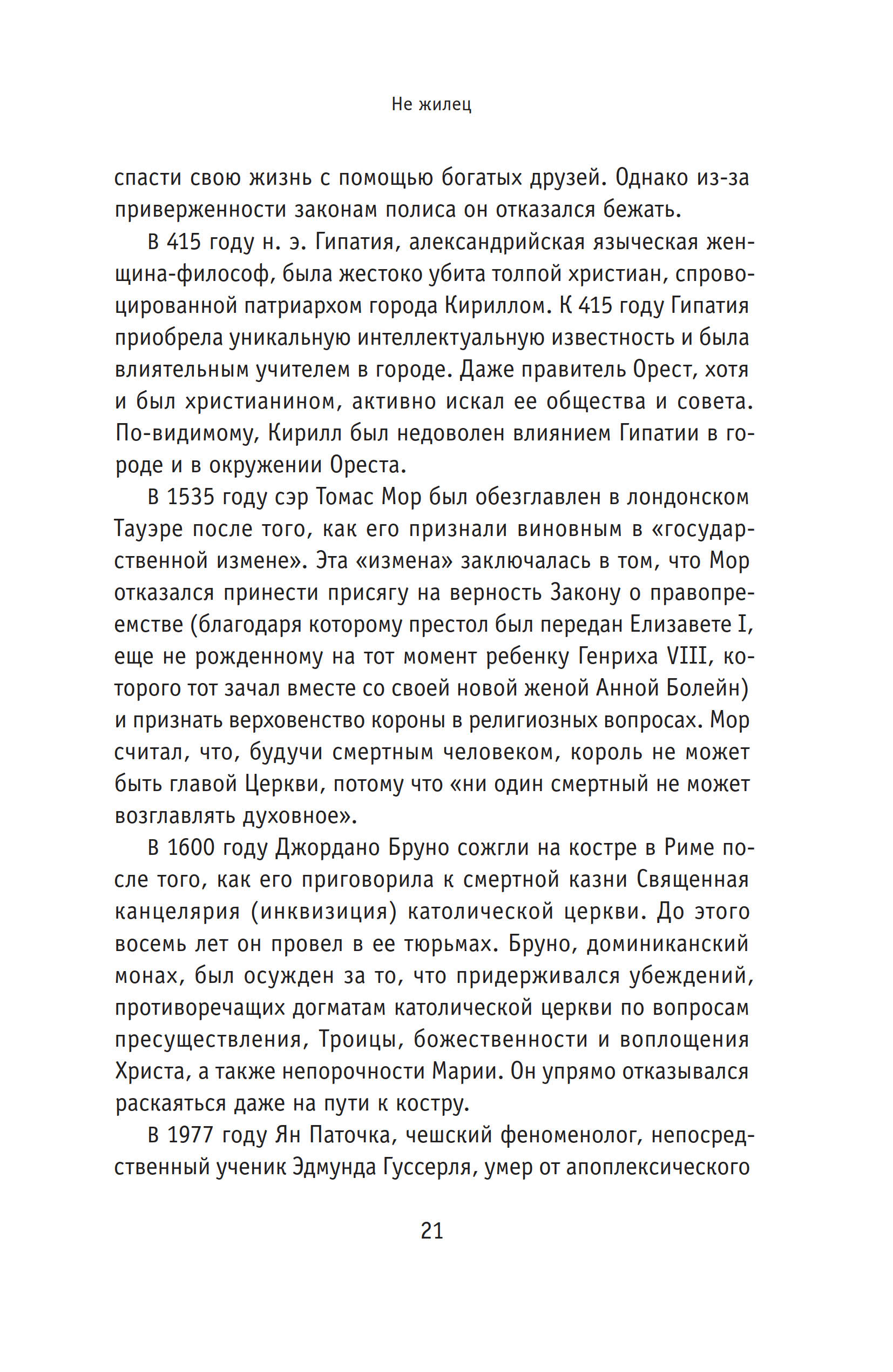 Что общего между Сократом, Гипатией, Джордано Бруно, Томасом Мором и Яном Паточкой? Однажды все они оказались перед самым трудным выбором: умереть, оставшись верными своим идеям, или отречься от них и остаться в живых. И каждый из них выбрал смерть. Смерть стала не только неотъемлемой частью их биографий, но и философским высказыванием — завещанием в самом прямом смысле этого слова. «Возможно, Сократ действительно никогда не написал ни одной строчки, но его смерть — один из величайших философских бестселлеров всех времен».