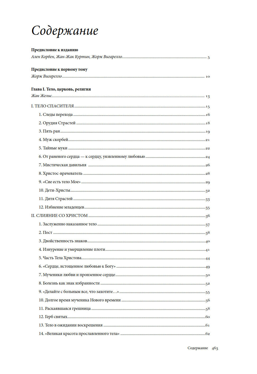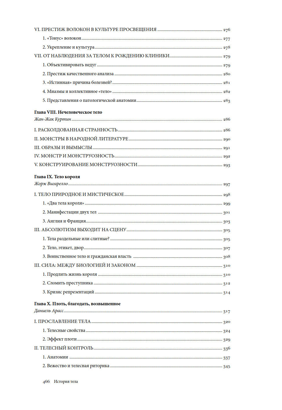 Первый том посвящен истории тела от Ренессанса до эпохи Просвещения и описывает становление европейского образа «современного» тела. История тела здесь рассматривается в разных аспектах: тело и религия, тело и общество, тело и сексуальность, тело и медицина, тело и игра, тело и власть.