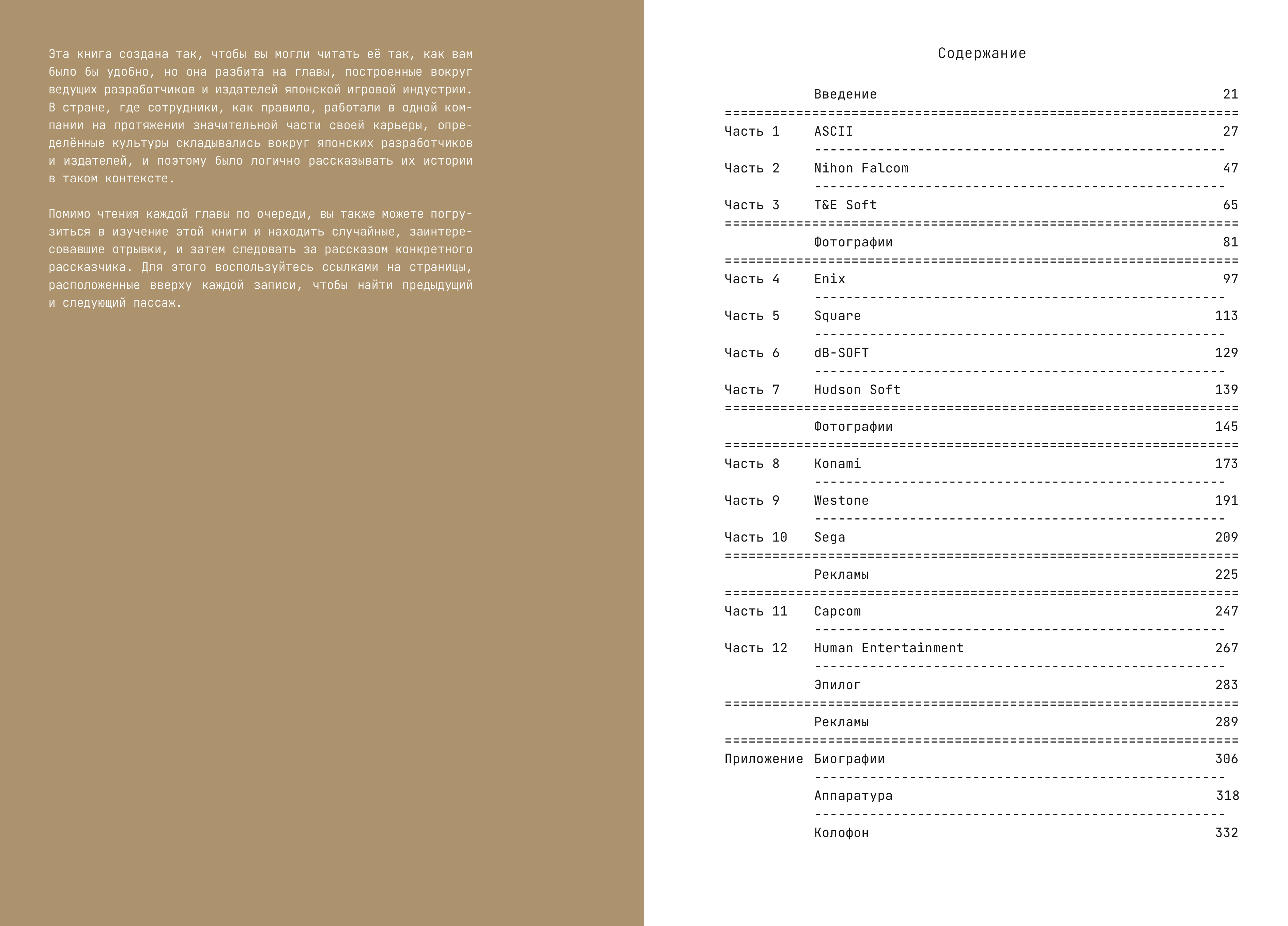Изобретательная и красиво оформленная история зарождающейся японской индустрии видеоигр, рассказанная очевидцами и непосредственными участниками описываемых событий, «Japansoft: история японской игровой индустрии» предлагает глубокий экскурс в игры, компании и человеческие эмоции, которые и формировали абсолютно новую культуру. Состоящая из интервью с разработчиками и гейм-дизайнерами, работавшими в таких компаниях, как Sega, Enix, Capcom, Hudson Soft, Nihon Falcom и других, эта книга позволяет взглянуть по-новому и с разнообразных перспектив на многие игры, определявшие своё время.