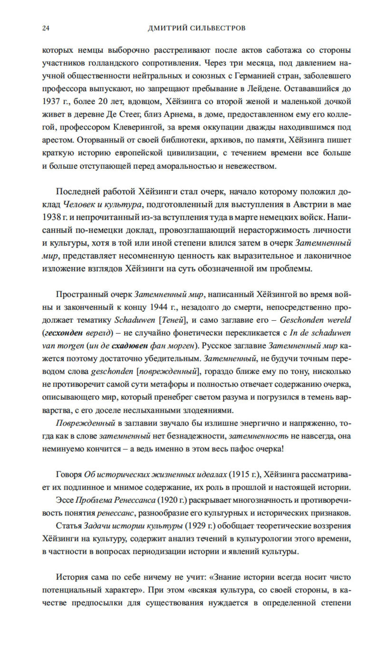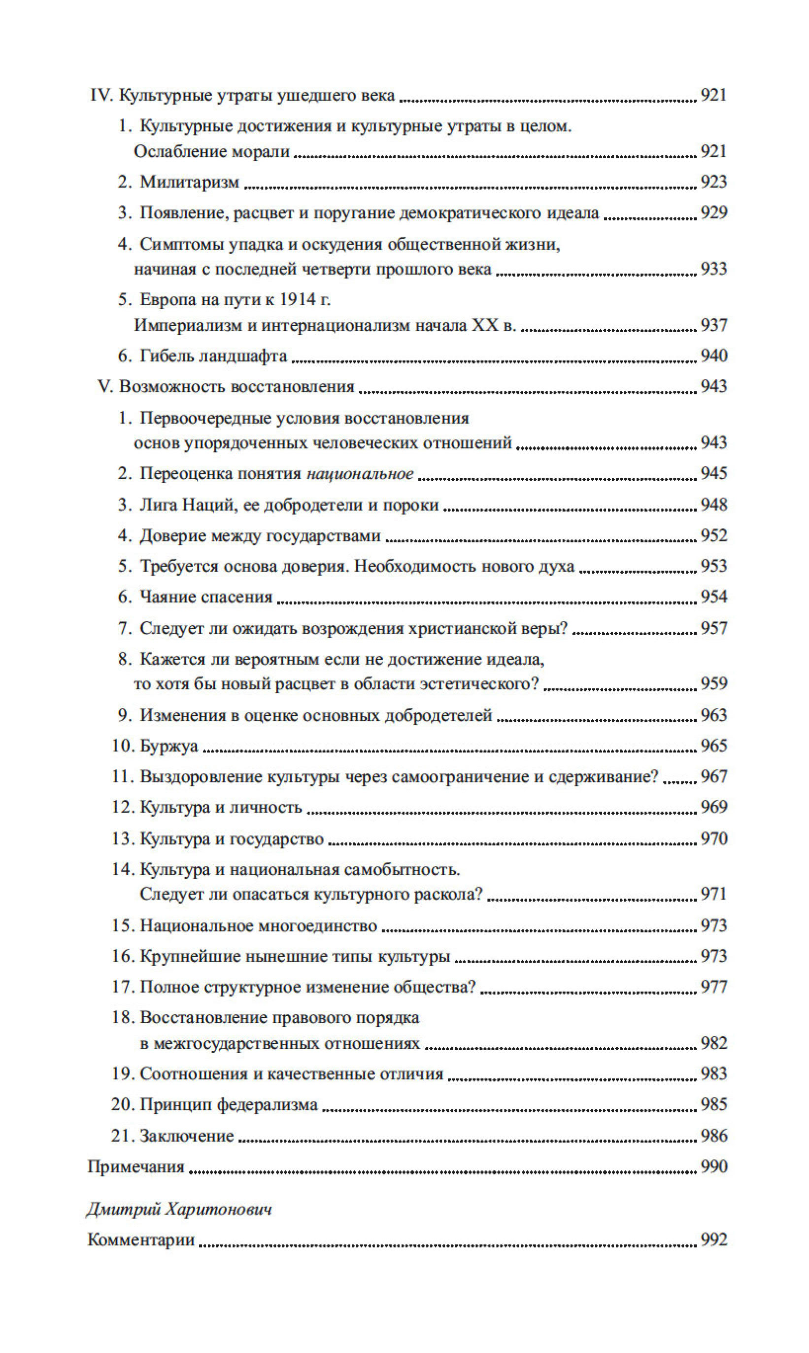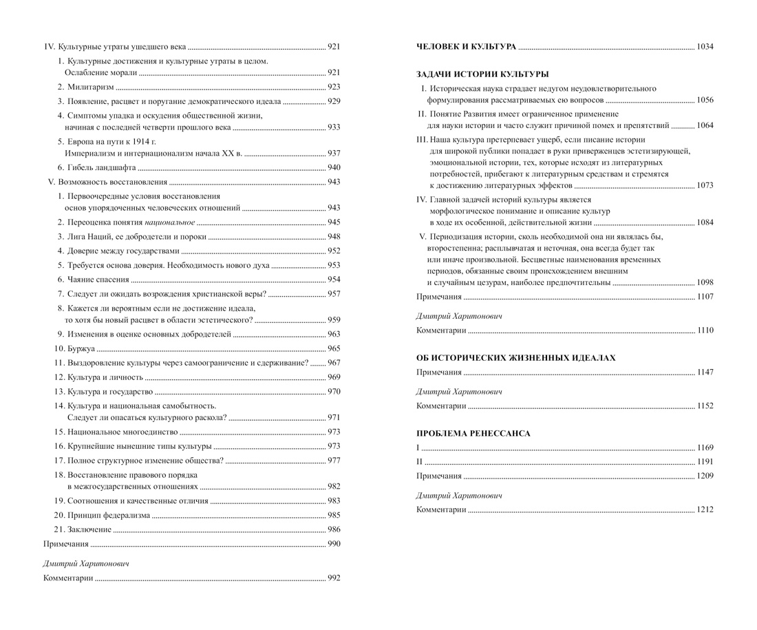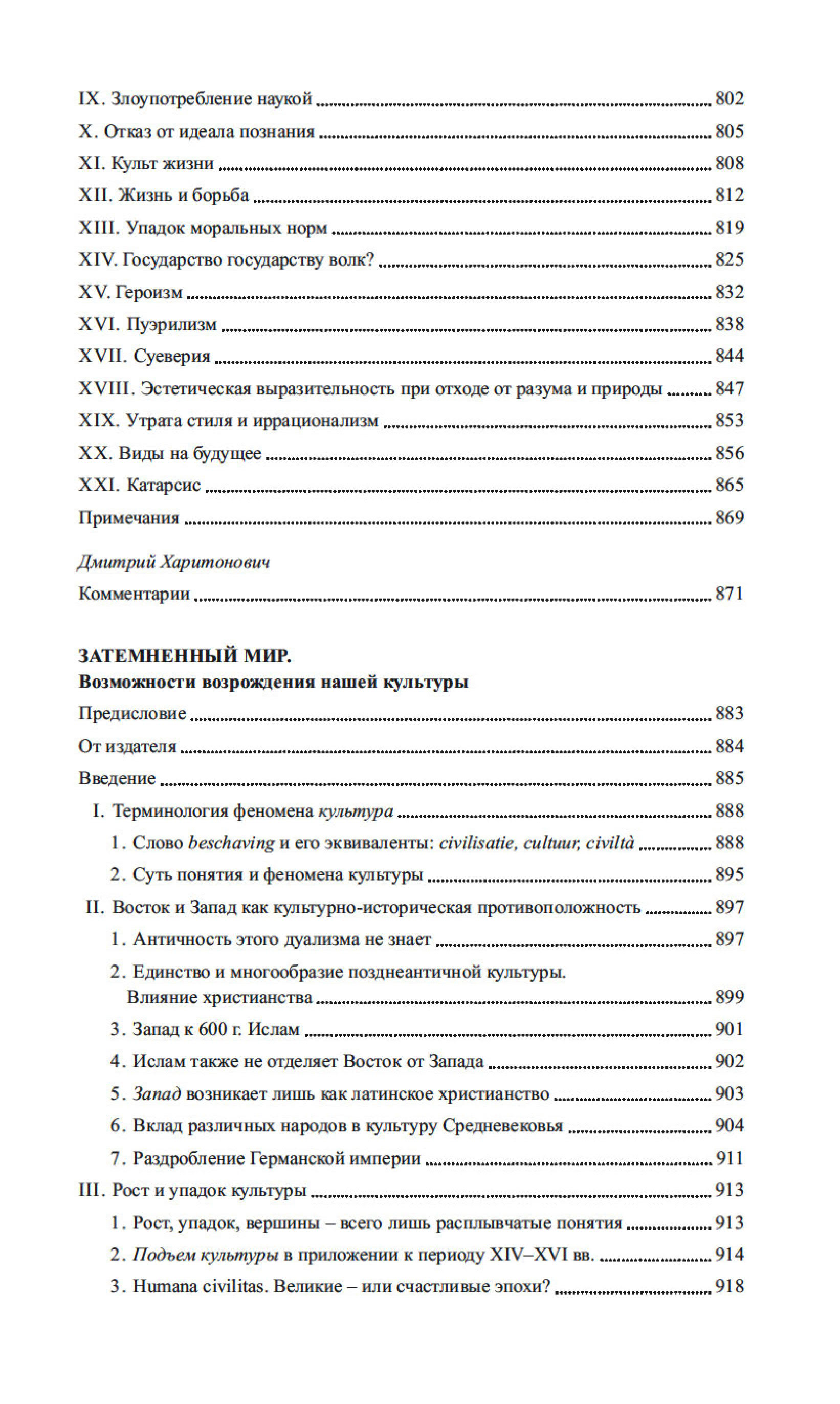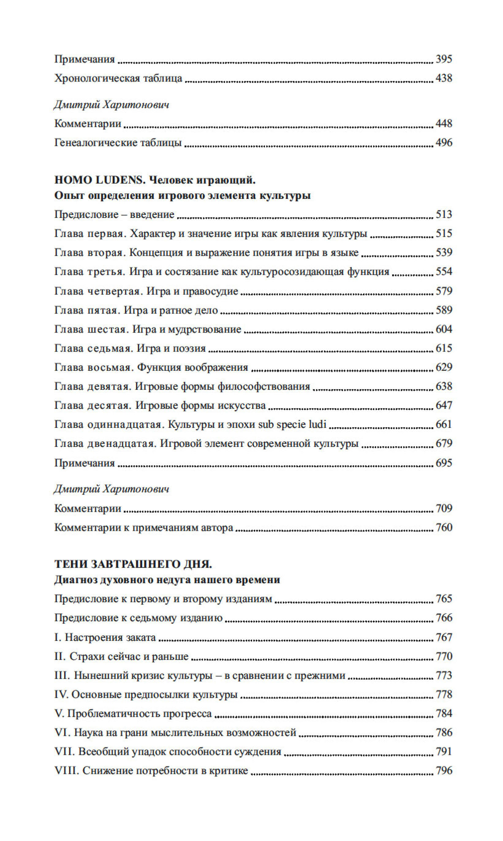 В эссе Тени завтрашнего дня, Затемненный мир, Человек и культура глубоко исследуются причины и следствия духовного обнищания европейской цивилизации в преддверии Второй мировой войны и дается прогноз о возрождении культуры в послевоенный период. Три статьи посвящены философским и методологическим вопросам истории и культурологии, теоретическим и нравственным подходам к культуре. Художественные дарования автора демонстрирует ироничная серия рисунков, посвященных «отечественной истории». Издание снабжено обширным научным справочным аппаратом.