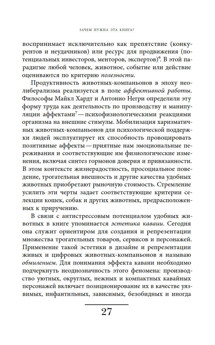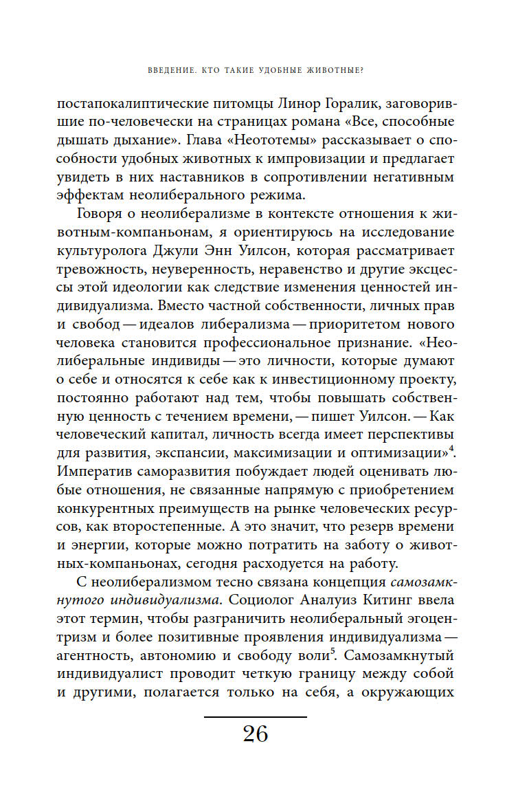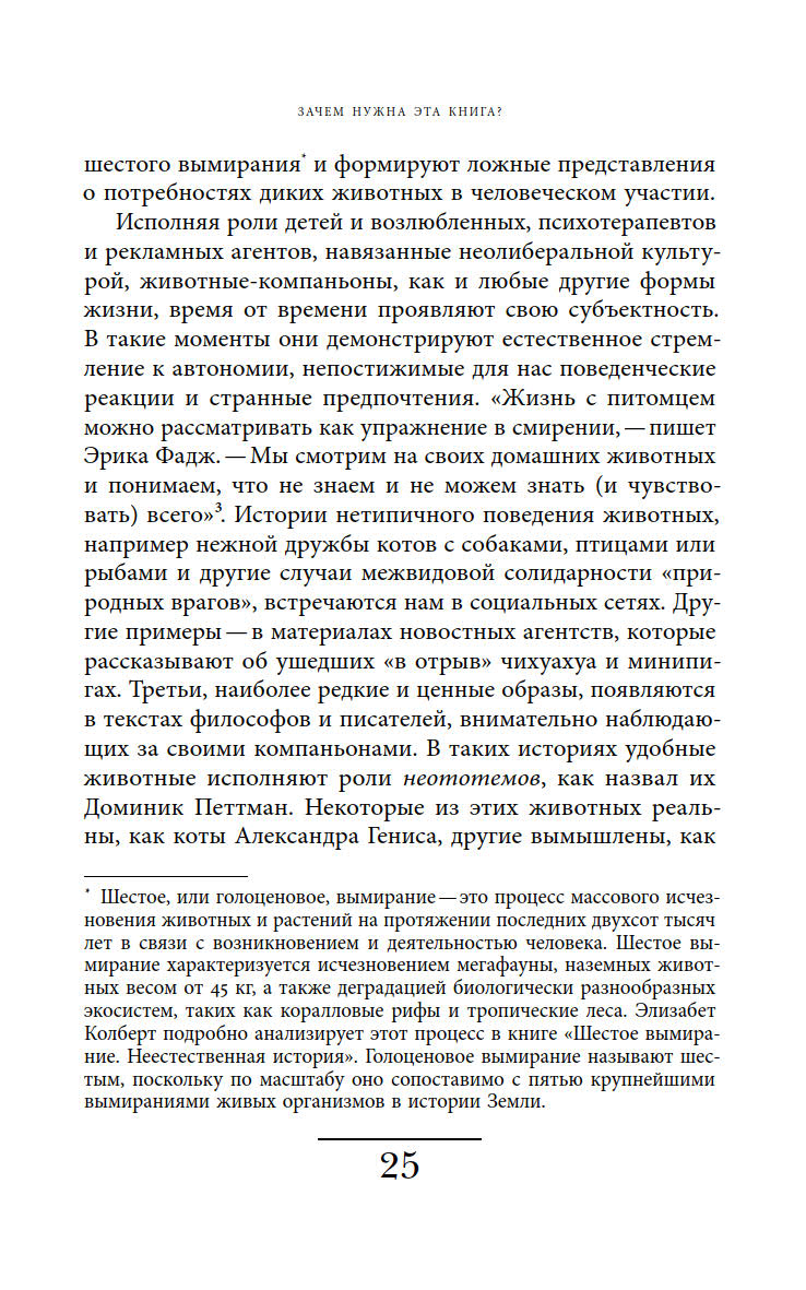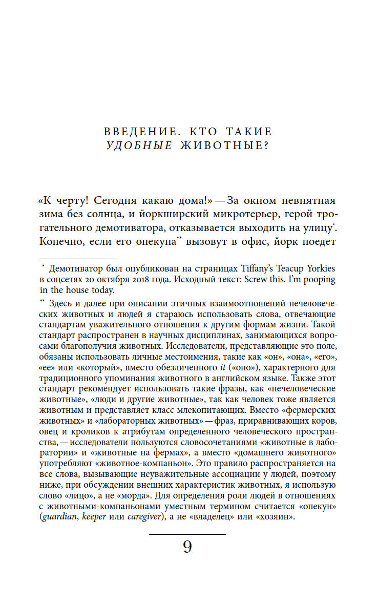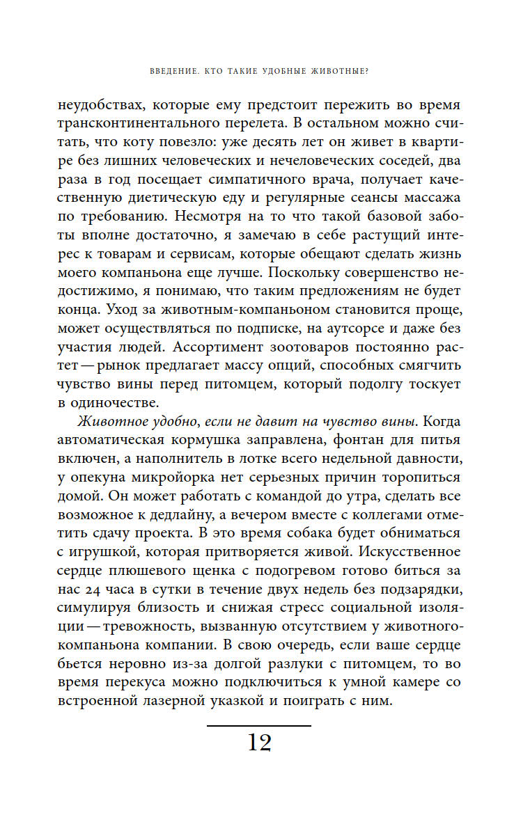 Ответы на эти вопросы автор ищет, осмысляя роли, навязанные животным в современной культуре, и прогнозируя последствия, которые может иметь такая динамика отношений между животными и людьми.