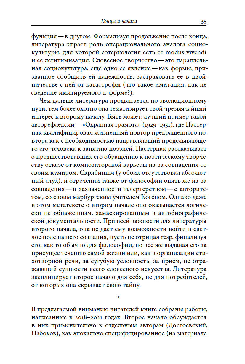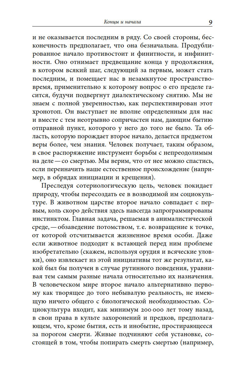 В отличие от животных человек переживает не только биологическое, но и духовное рождение. Этот переход от первого начала к второму он распространяет на все области своего творчества. Малоизученная проблема второго начала в истории социокультуры освещается в книге профессора И. П. Смирнова под разными углами зрения. Во вступительной части работы секундарный генезис рассмотрен как одно из важнейших основоположений человеческой активности. В следующих разделах автор переходит к исследованию второго начала на конкретном историко-литературном и кинематографическом материале, в частности, сюда относятся творчество Достоевского и Набокова, а также судьба исторического авангарда. Книгу завершают главы, в которых прослеживаются травматичные для русской социокультуры ситуации и попытки выхода из них, закладывающие национальные традиции. Игорь