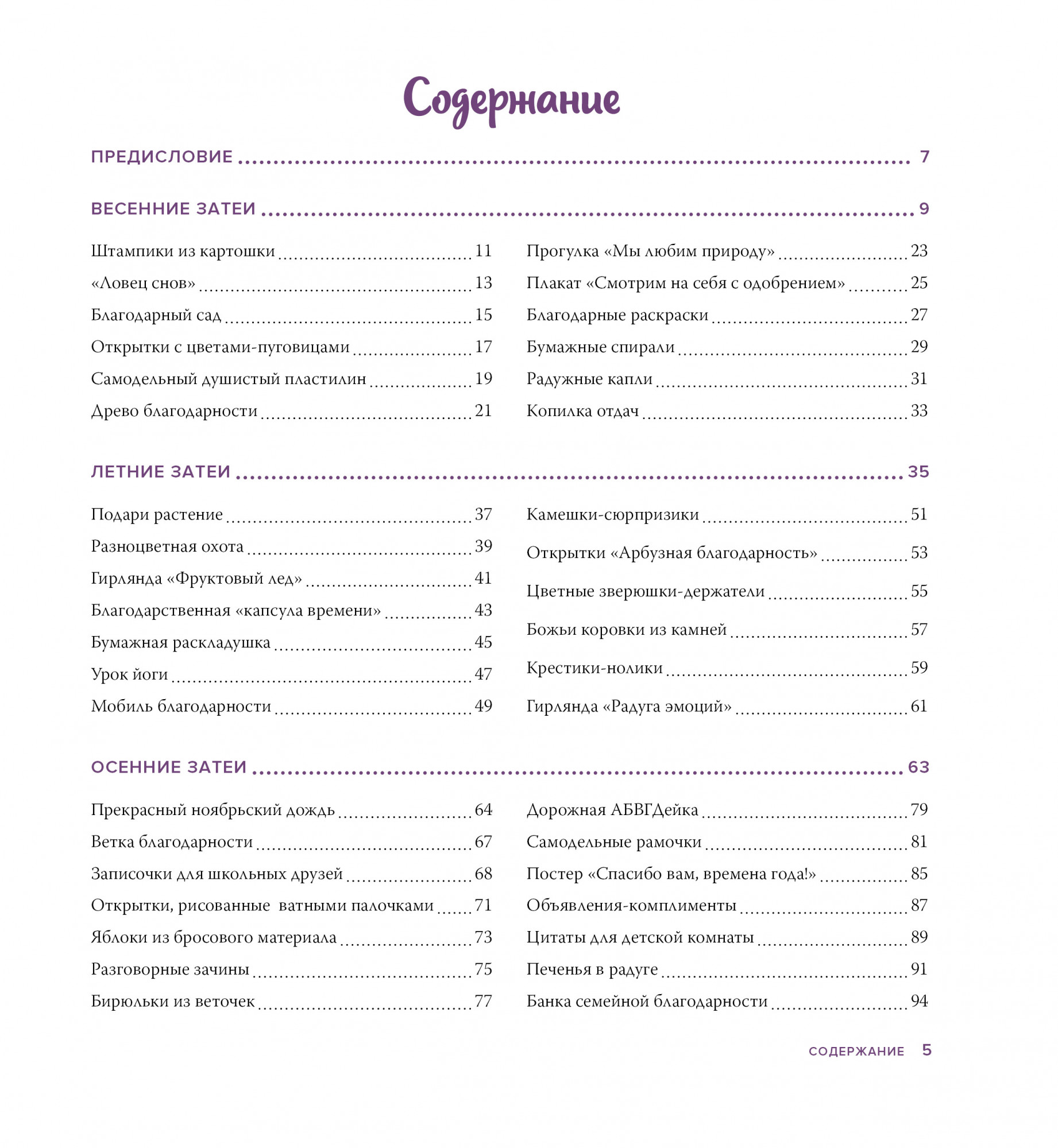 Умение говорить спасибо — важнейшее человеческое качество. Джоанна Гжешчак — психолог, декоратор, блогер, фотограф и заботливая мама двух дочек и сына — придумала, как развивать в детях умение правильно выражать благодарность с помощью творчества и совместных семейных затей. Перед вами увлекательная коллекция идей и поделок, среди которых — древо благодарности, благодарственная «капсула времени», гирлянда «Радуга эмоций», постер «Спасибо вам, времена года!», медальки из соленого теста, открытки, благодарные шарады... Проекты продуманы для каждого сезона, а всего их 52 — по одному на каждую неделю года. Эти занятия не только развлекут детей, но и сплотят вашу семью, подарят счастливые моменты от общения друг с другом и помогут ощутить благодарность за каждый прожитый вместе день.