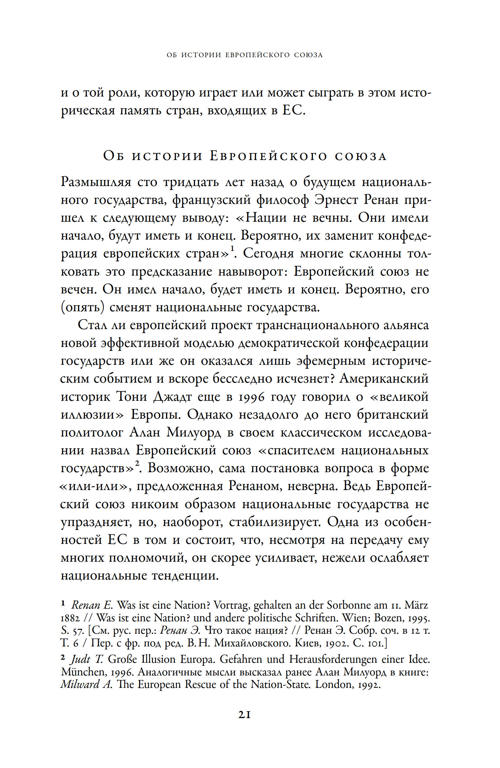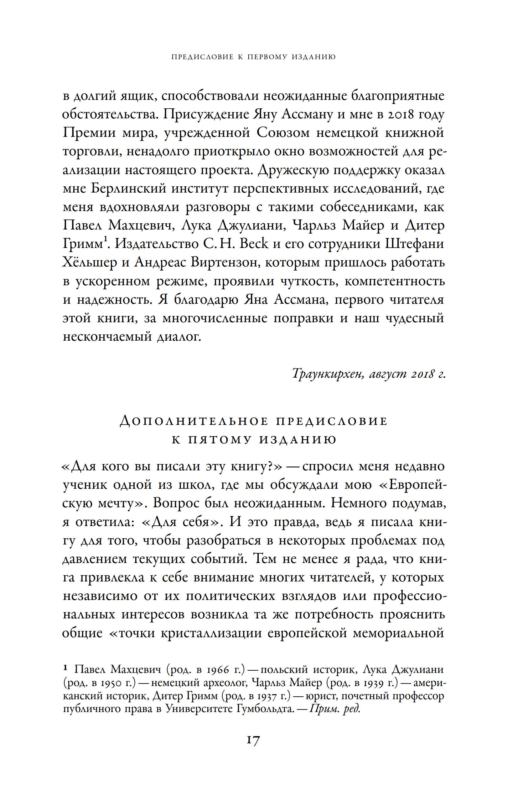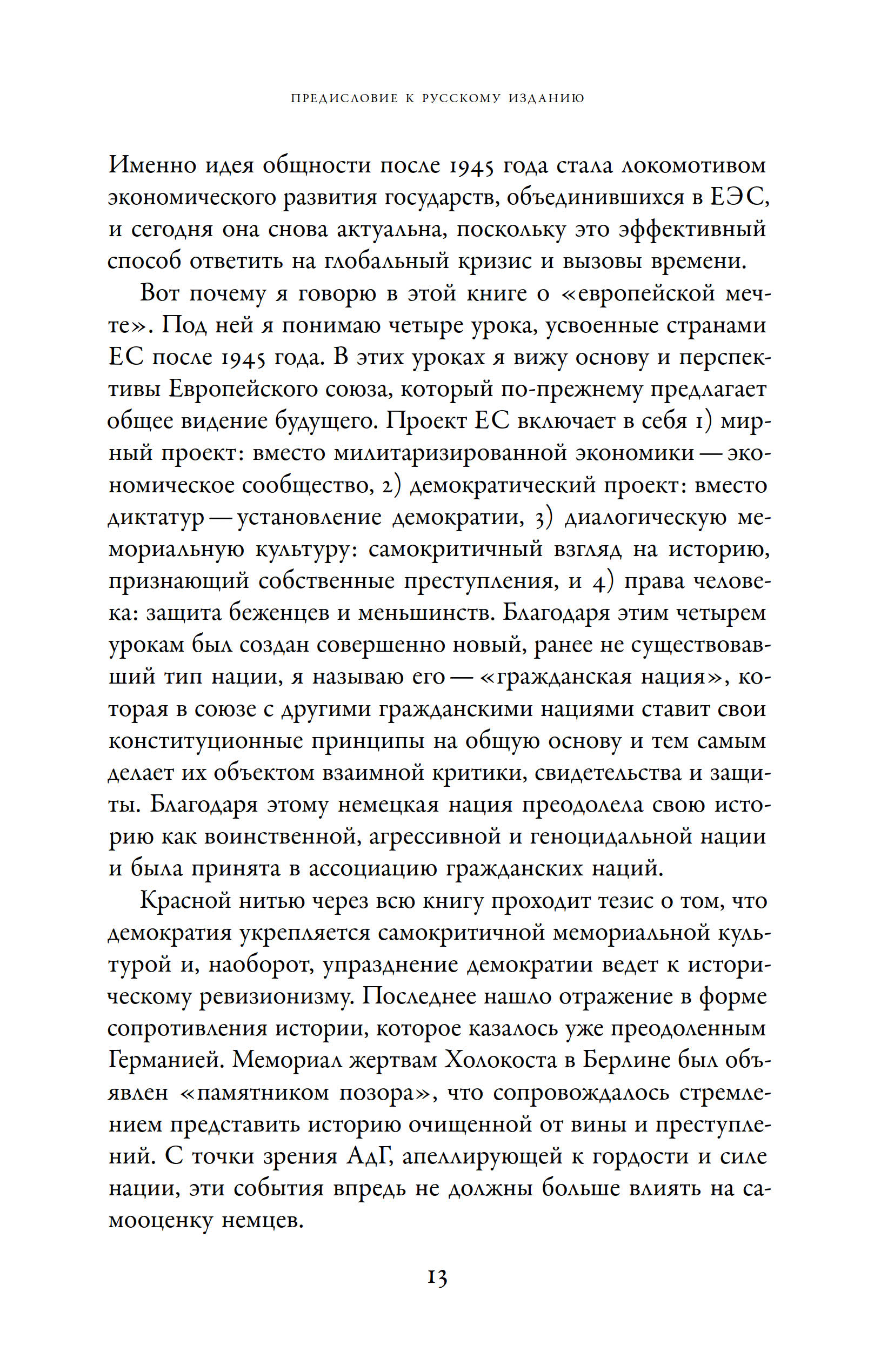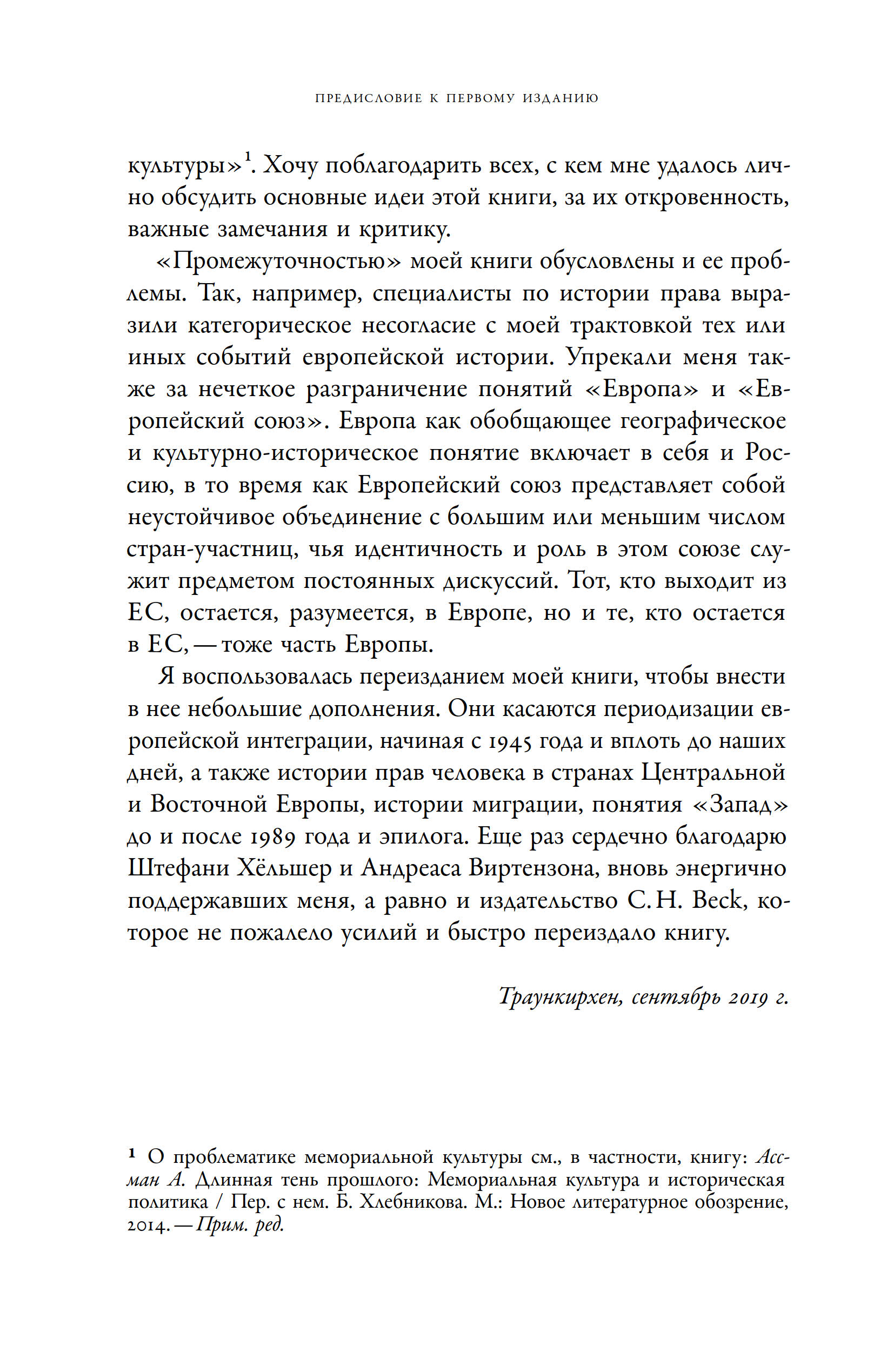 Наследие главных катастроф XX века заставляет европейские страны снова и снова пересматривать свое отношение к истории, в процессе таких ревизий решается судьба не только прошлого, но и будущего. Главный вопрос, который перед нами стоит, звучит так: «Есть ли альтернатива национальной гордости, опирающейся на чеканные образы врага и забывающей о жертвах собственной истории?» В двух новых книгах, объединенных в этом издании под одной обложкой, немецкий историк и специалист по культурной памяти Алейда Ассман тоже задается этим вопросом. На фоне сдвига в сторону национализма, случившегося в последние годы во многих европейских государствах, знаменитая исследовательница анализирует послевоенный опыт и осмысливающие его критические теории. Автор предлагает не соглашаться ни с утопистами, мечтающими о глобальном космополитическом обществе, ни с воинственными популистами, апеллирующими к гордости и силе нации, а связать свои надежды с мемориальной культурой, задача которой — переизобрести нации, сформировать у них совесть и сделать их ответственными за безопасное будущее Европы.