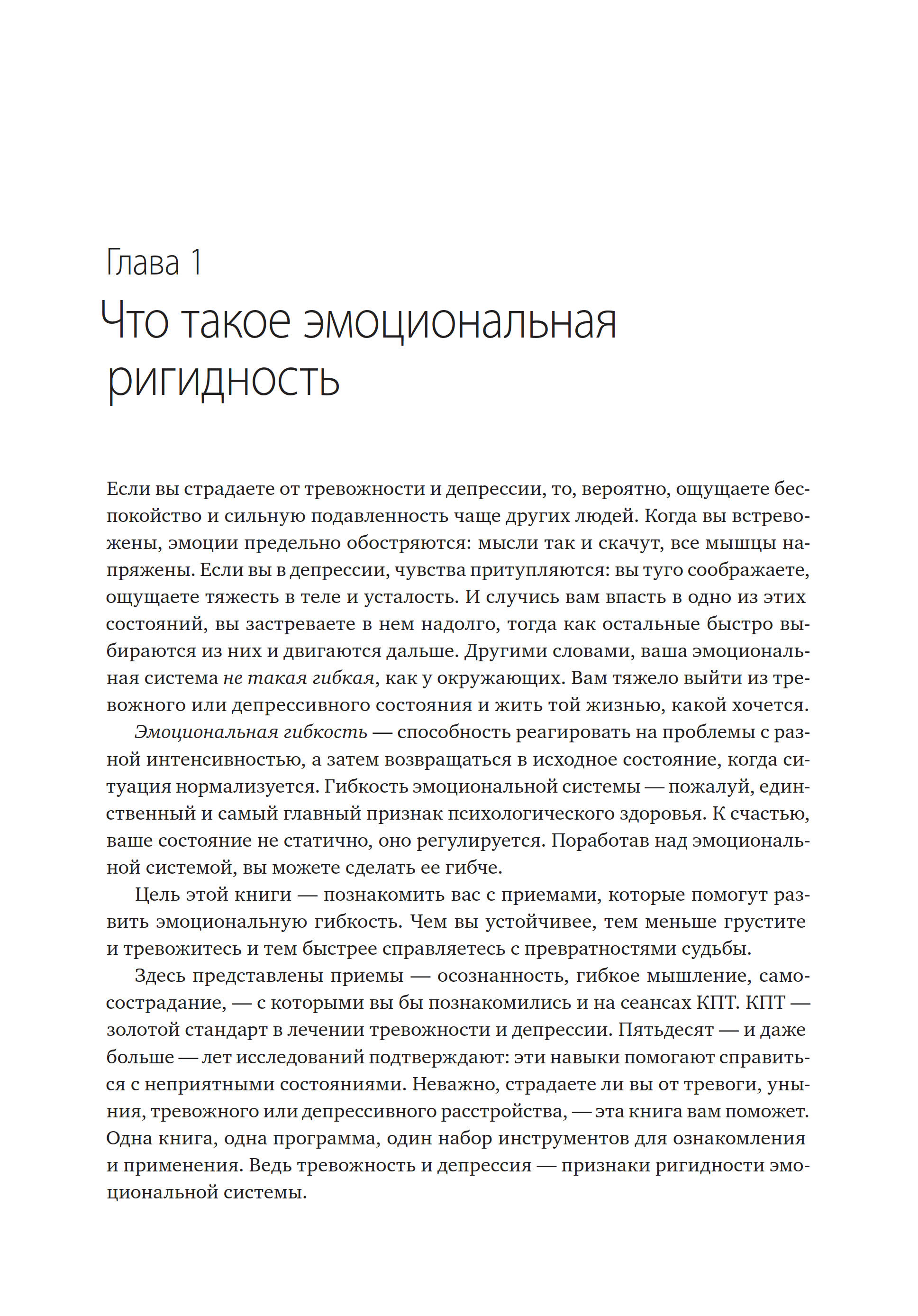 — Цель этой книги — познакомить вас с приемами, которые помогут развить эмоциональную гибкость. Чем вы устойчивее, тем меньше грустите и тревожитесь и тем быстрее справляетесь с превратностями судьбы.