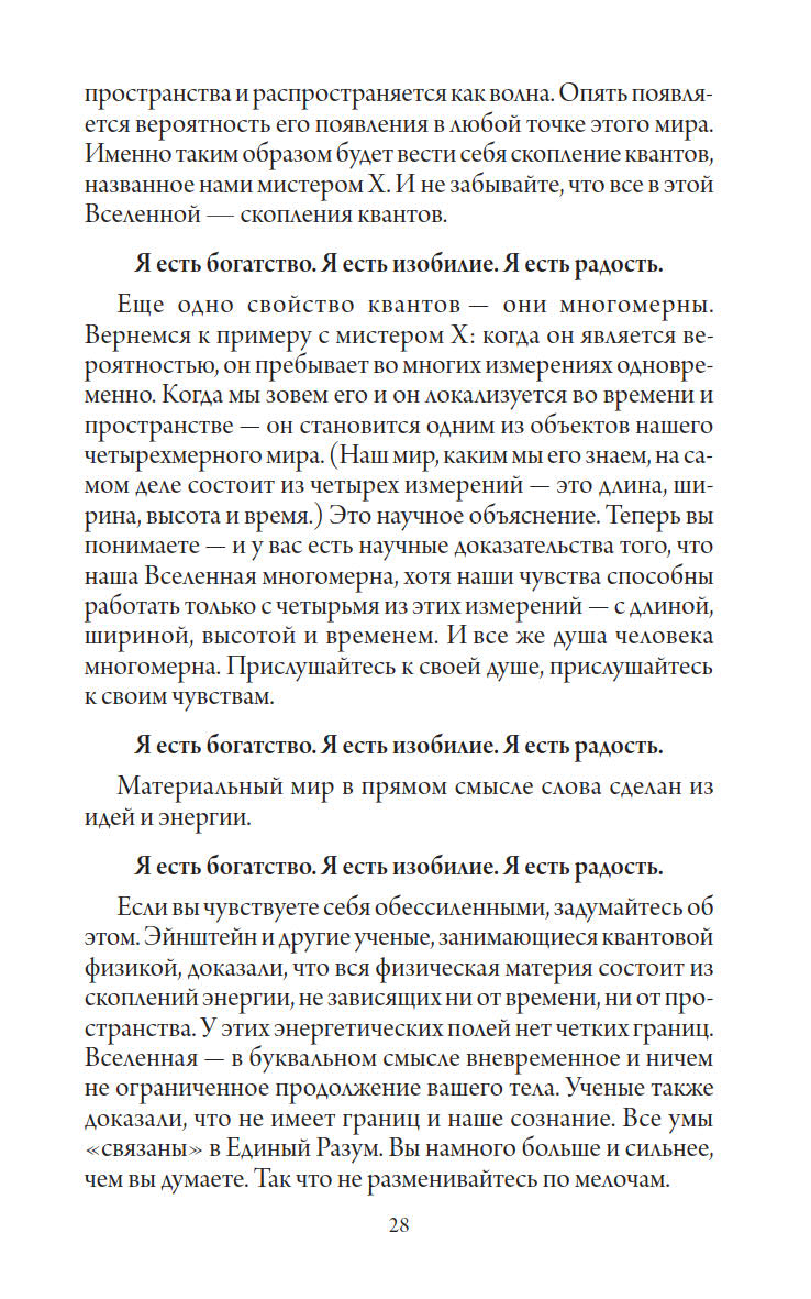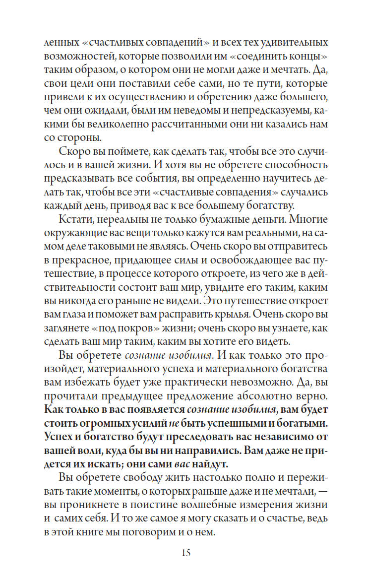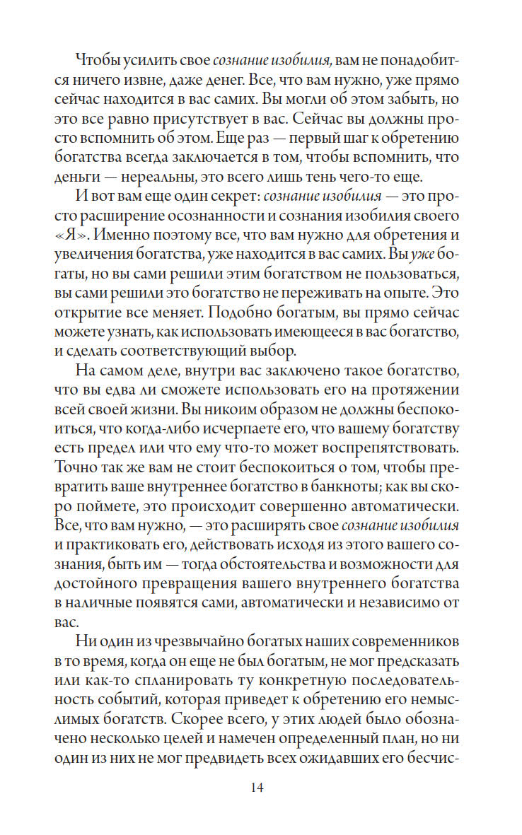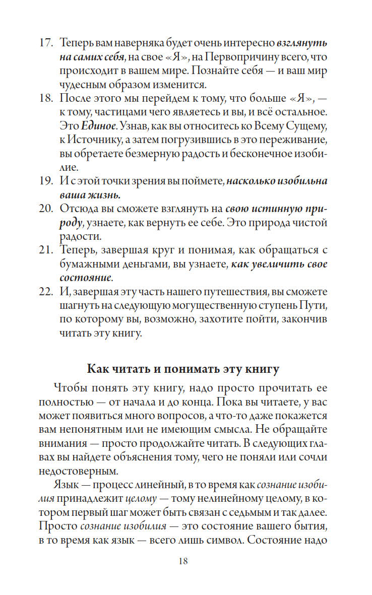 Но самое главное, что проходит через всю книгу красной нитью, — это сознание изобилия. Именно оно может сделать нас богатыми и счастливыми.