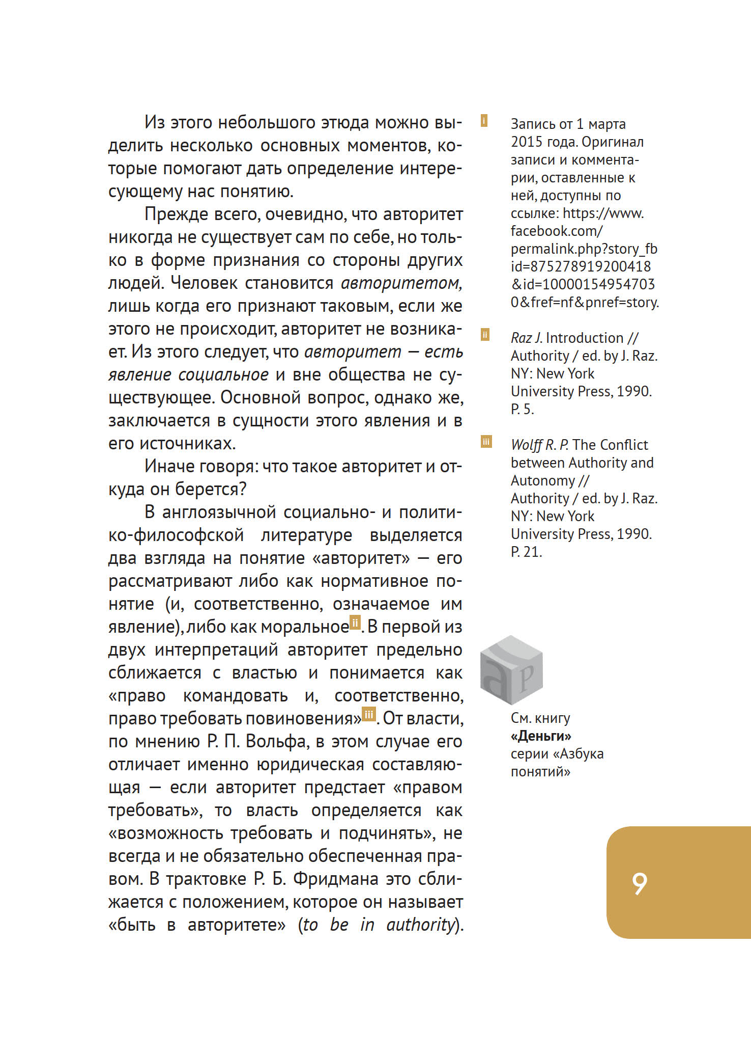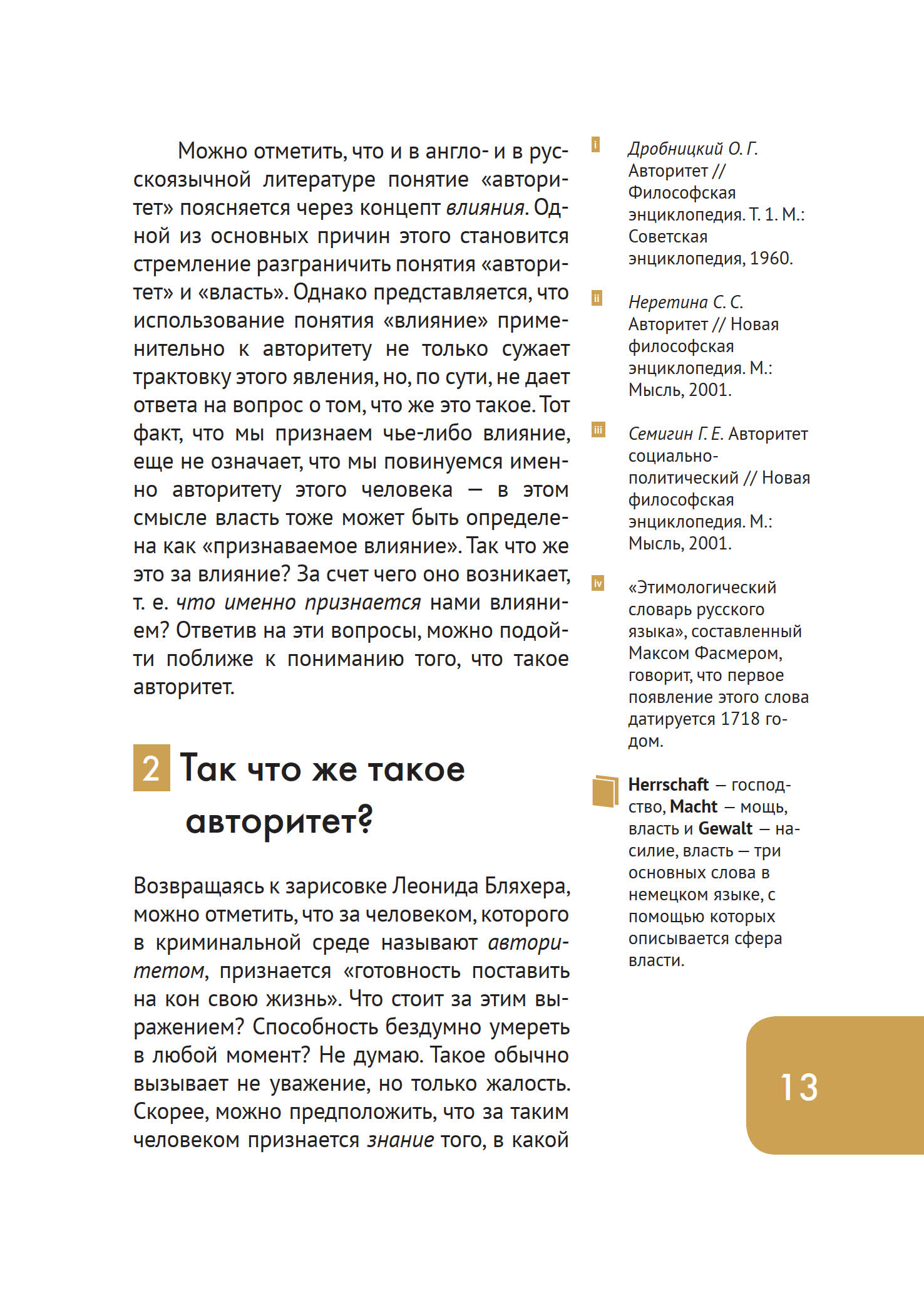 Наряду с властью, авторитет представляет собой одно из наиболее значимых понятий политической и социальной философии. И вроде бы мы знаем, в каких контекстах оно используется и что оно значит. Но при этом оно остается слабо проработанным, а его история, по сути дела, не написана. Данная книга представляет собой попытку определить границы этого понятия. В ней ставятся вопросы о том, что такое авторитет, как авторитет соотносится с властью, моралью, политикой и правом. Среди героев книги много знаменитых мыслителей, от Цицерона до Ханны Арендт, но главный ее герой, безусловно, — само понятие «авторитет», во всей своей неопределенности и многозначности. В книге читатель найдет ответы на многие важные вопросы. В чем тайна влияния одного человека на другого? Каковы механизмы подчинения? Как возникает понятие «авторитет» и как оно трансформируется? Об этом читайте в книге ведущего научного сотрудника Центра фундаментальной социологии НИУ ВШЭ Александра Марея. Книга рассчитана на всех, кто интересуется проблемами политики, истории и социальных наук.