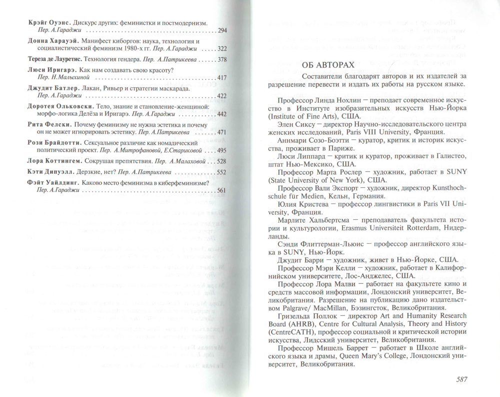 Данная антология объединяет тексты ведущих западных феминисток, написанные за последние тридцать лет. Проблемы искусствознания рассматриваются здесь с позиций гендерной теории. Это не столько историческое свидетельство состояния и развития гендерной теории, сколько серия размышлений, открытых в сегодняшний день. Именно поэтому антология не просто восполняет культурные лакуны, но позволяет обращаться с ней как с актуальным изданием.