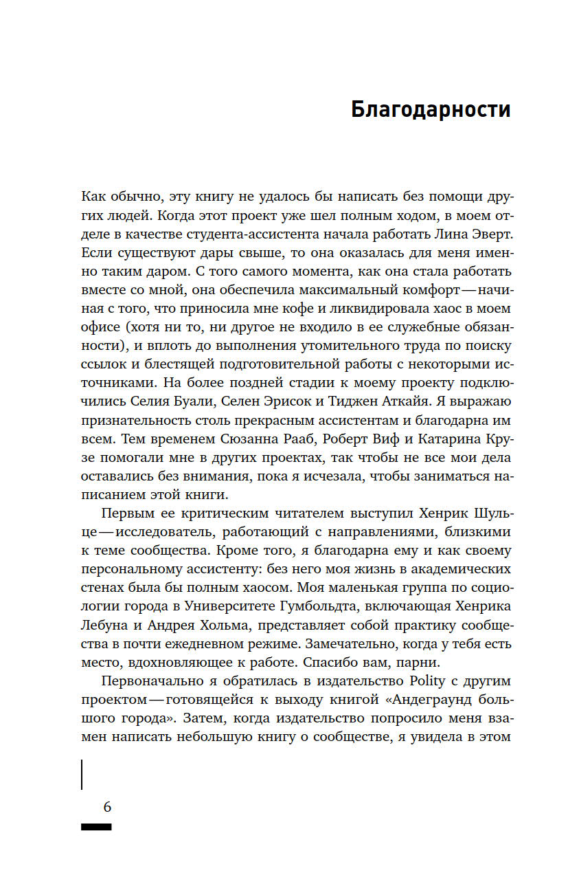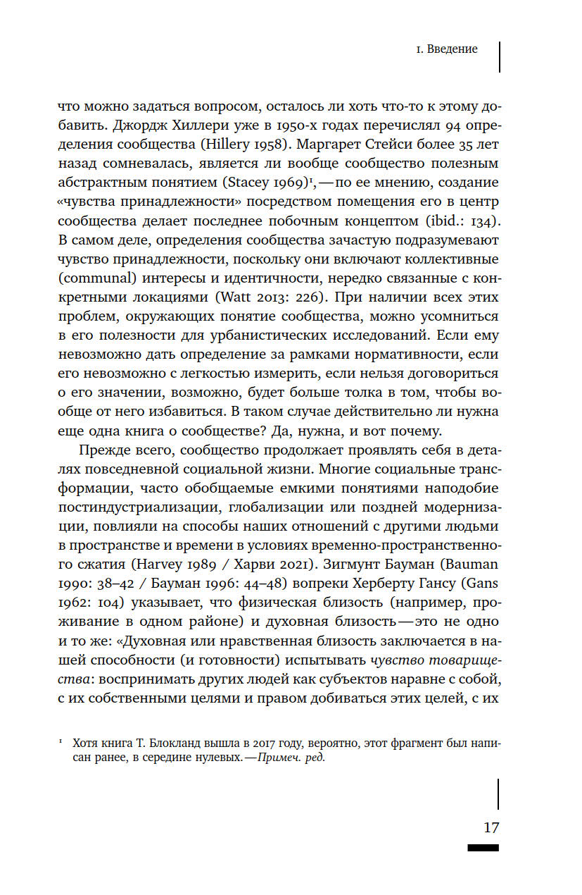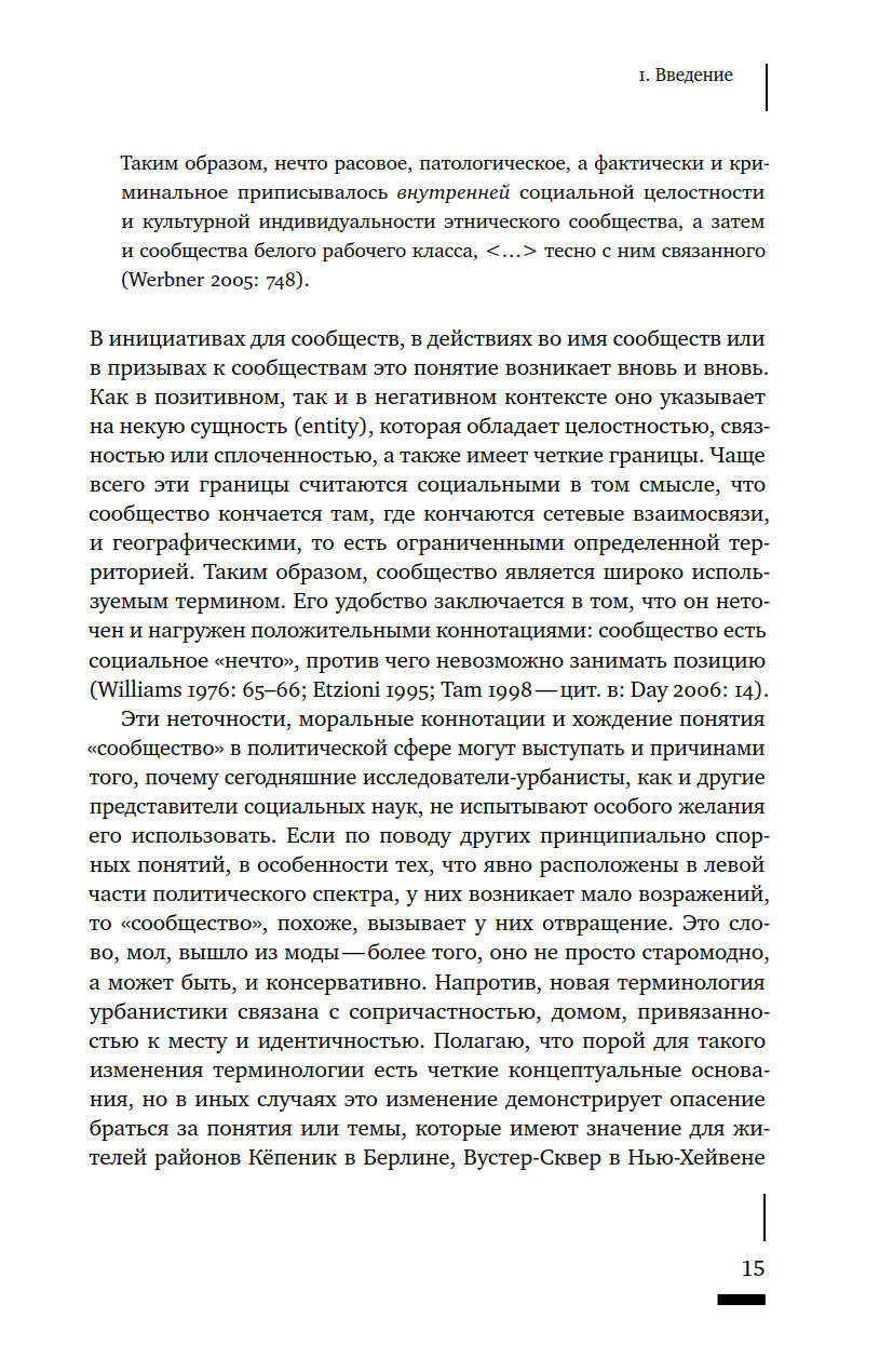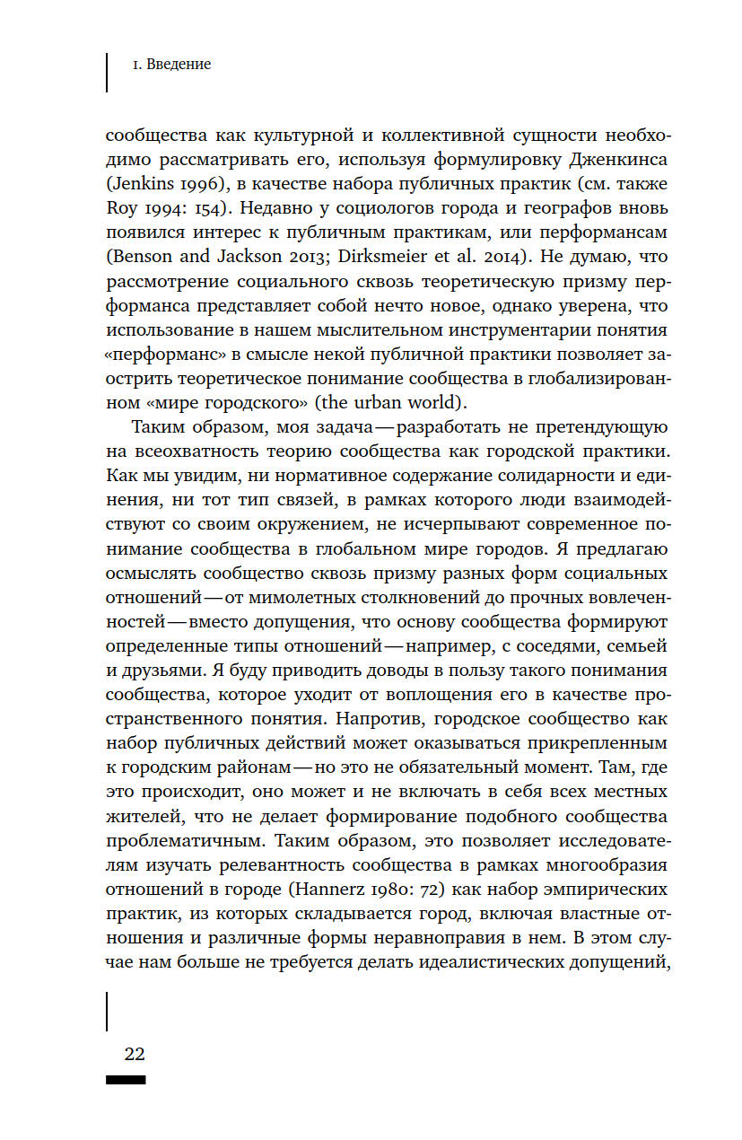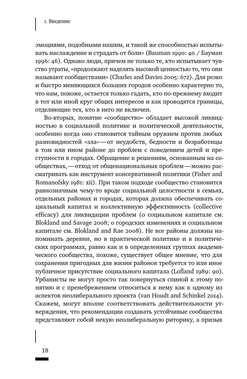 Что такое сообщество? Как определяется принадлежность к нему тех или иных людей? Насколько прочно сообщества привязаны к конкретным пространствам? И почему политические манипуляции этим понятием представляют реальную опасность? Термин «сообщество» в последние годы активно используется различными акторами городской среды — от активистов до чиновников и застройщиков, — однако его значение остается размытым. В своей книге Талья Блокланд предлагает концептуально осмыслить это понятие через призму различных социальных отношений, чтобы ликвидировать возникший зазор между теорией и практикой работы с сообществами. Она предпринимает попытку рассмотреть их как набор эмпирических практик, из которых складывается сам город, со всеми его властными отношениями и формами неравенства.