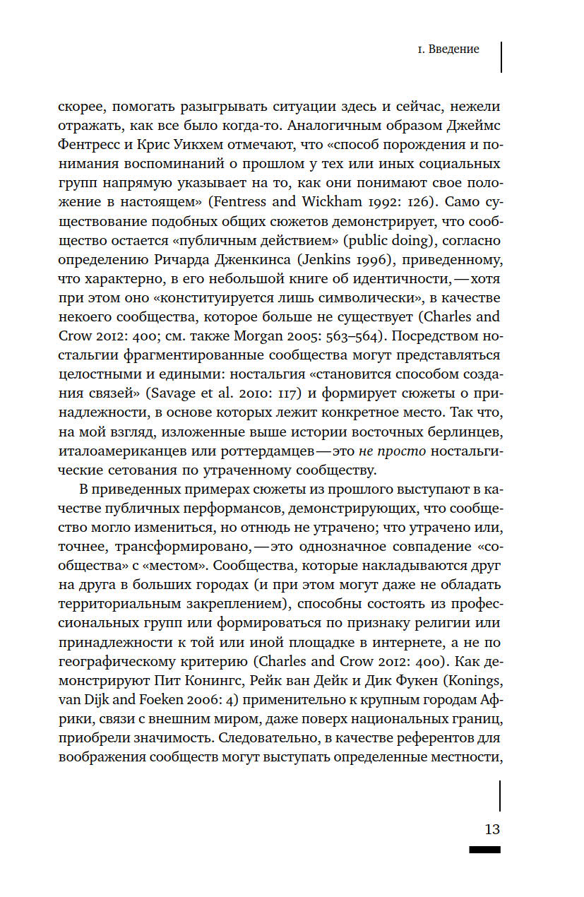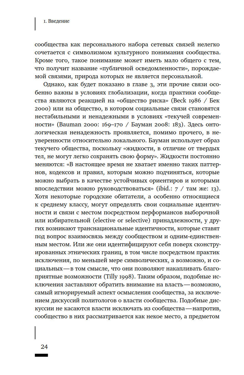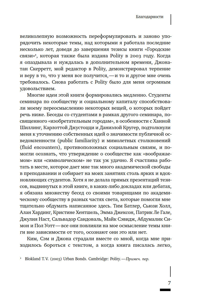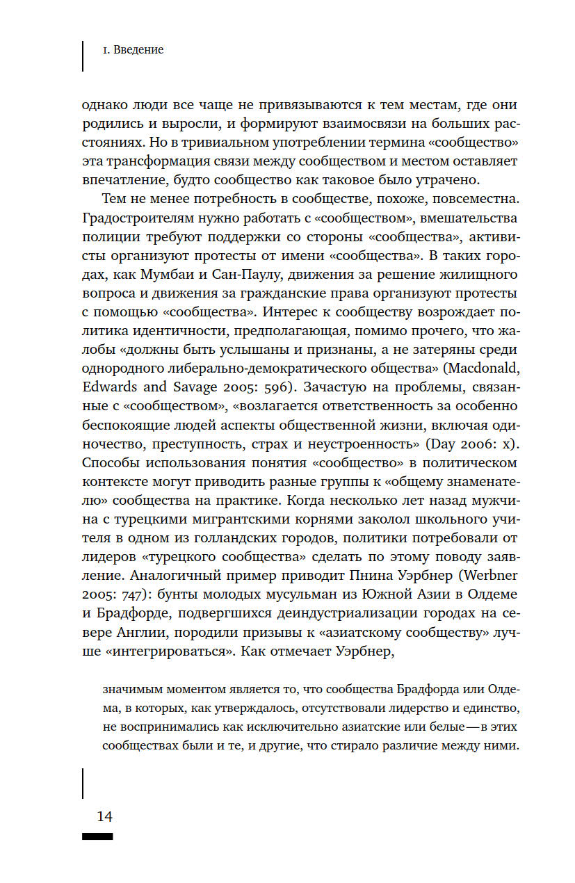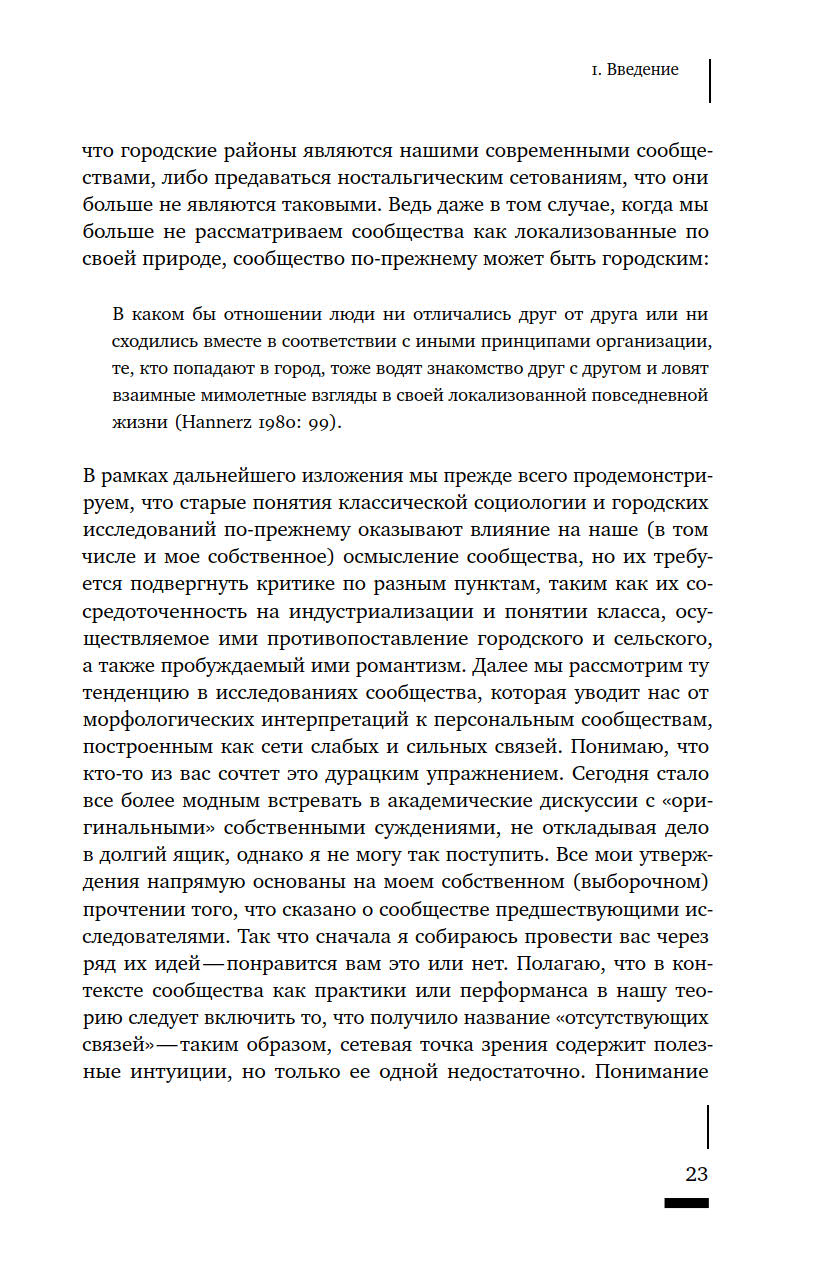 Что такое сообщество? Как определяется принадлежность к нему тех или иных людей? Насколько прочно сообщества привязаны к конкретным пространствам? И почему политические манипуляции этим понятием представляют реальную опасность? Термин «сообщество» в последние годы активно используется различными акторами городской среды — от активистов до чиновников и застройщиков, — однако его значение остается размытым. В своей книге Талья Блокланд предлагает концептуально осмыслить это понятие через призму различных социальных отношений, чтобы ликвидировать возникший зазор между теорией и практикой работы с сообществами. Она предпринимает попытку рассмотреть их как набор эмпирических практик, из которых складывается сам город, со всеми его властными отношениями и формами неравенства.